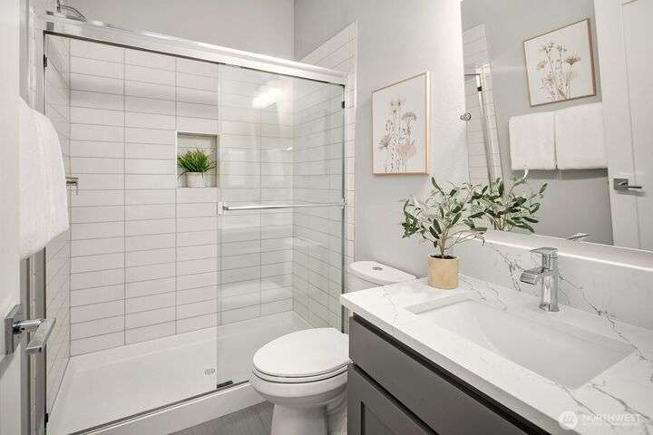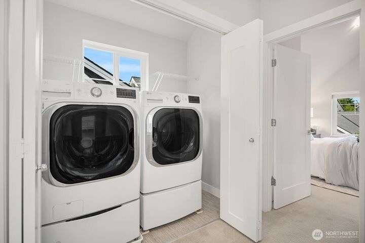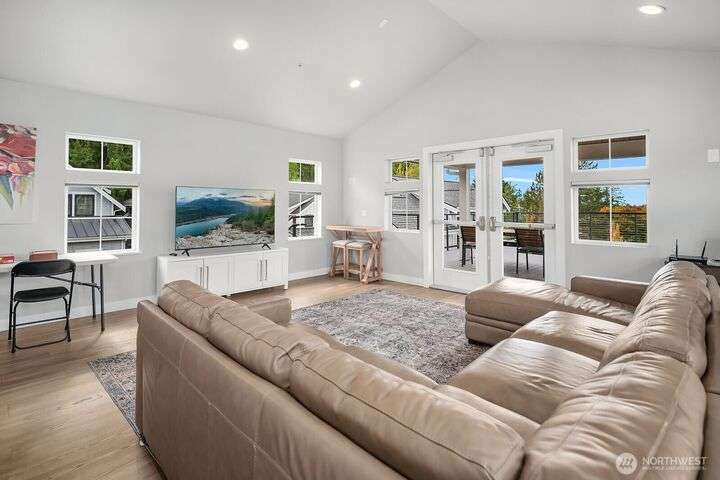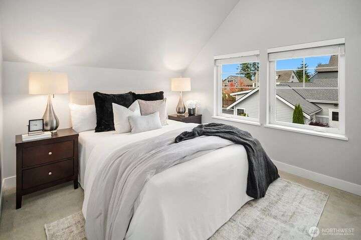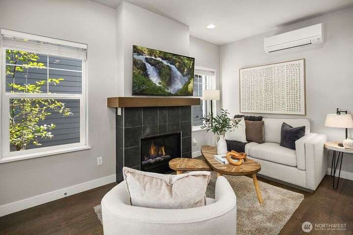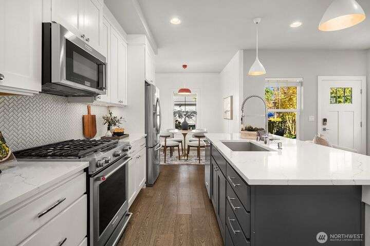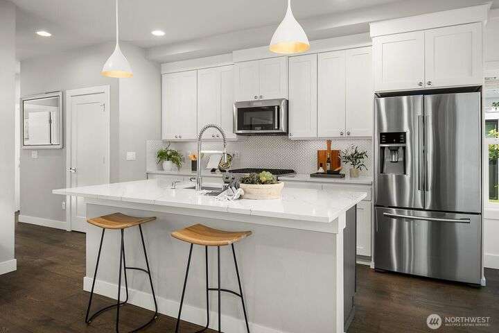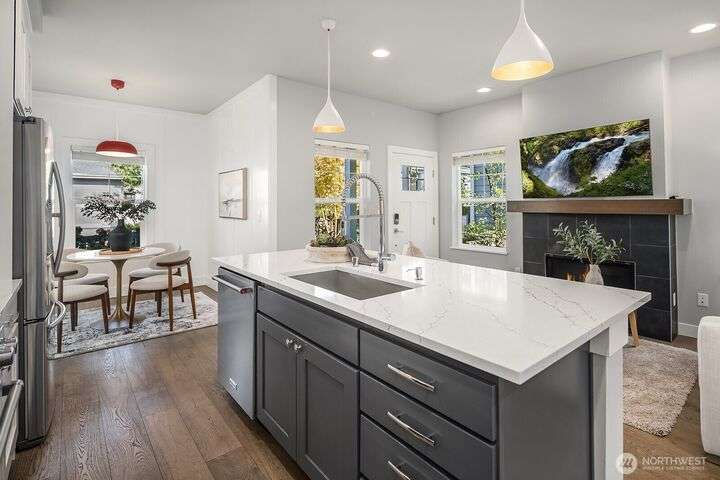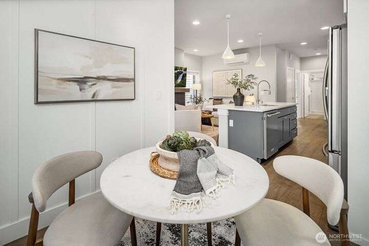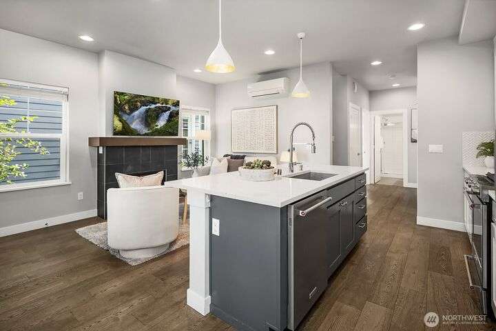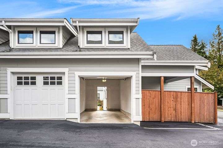 Welcome to charming Sammamish Cottages, in heart of the Plateau. Enjoy privacy of a single family home w/simplicity of condo living. Covered front porch opens to light filled living room w/gas fireplace. Open-concept kitchen featuring quartz countertops, SS appliances, large island w/bar seating, walk-in pantry & dining nook. Main floor includes bedroom/home office w/a 3/4 bath. Upstairs find 2 spacious bedrooms w/vaulted ceilings; including a primary suite w/walk-in closet & gorgeous ensuite. Full size W/D for convenience. A/C for year-round-comfort. Dedicated detached garage plus one uncovered parking stall. Low HOA Dues. Inviting community clubhouse to host events. Top rated Issaquah School District. Minutes from YMCA, Library, City Hall