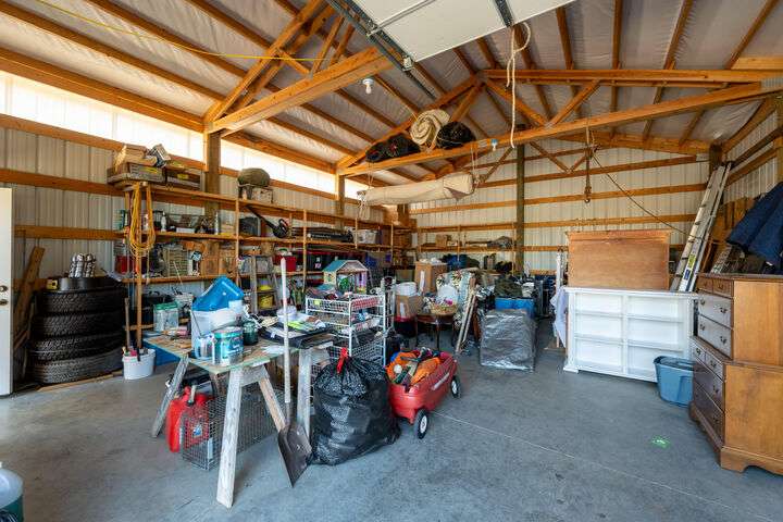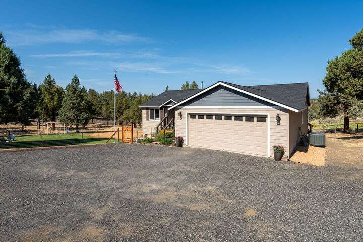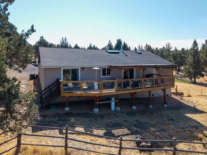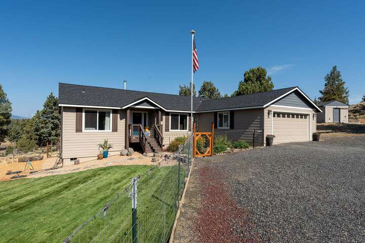 Highly upgraded single level home on over 2 acres w/a great room layout, unobstructed Mt Jefferson views, a shop, & insulated/finished hobby shed. Upon entering the home, you are greeted by vaulted ceilings in a great room space that separates the primary suite from both guest bedrooms while offering high end LVP flooring, a kitchen island, quartz counters, 2 pantries, & direct access to the large deck w/pergola. The primary suite has expansive built-ins, a slider to the deck, spacious walk-in closet & a double vanity bath w/soaker tub & stall shower. Both guest bedrooms are large enough for king-size beds & share a well laid out bath w/tub shower combination. The shop has a covered RV area, & the inside has ample space for all your storage & hobby needs. A detached & fully insulated hobby shed has AC, a covered porch, & attic storage & the well house has a generator hookup for the well along w/a shower/sink. Below the property there is quick access to the Deschutes & Steelhead Falls!