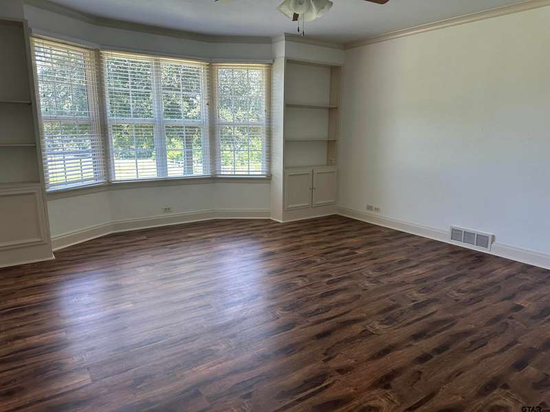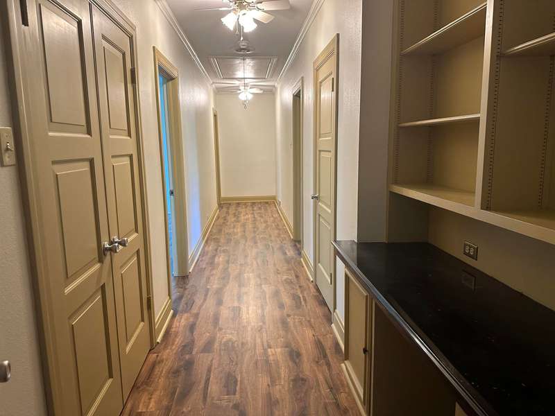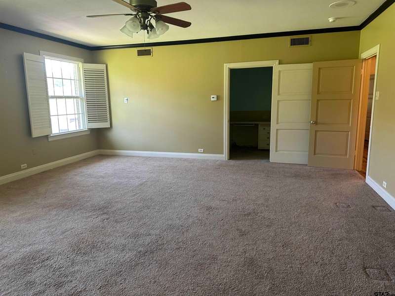 This impressive estate sits on 3.8 fenced acres at a desirable corner lot, featuring a concrete driveway, barn/workshop, and a spacious fenced backyard. The home welcomes you with covered front and back porches offering serene views and a charming brick-floored foyer that opens to a large living room with a wood-burning fireplace, built-ins, and beautiful hardwood floors. Inside, you'll find 3 generously sized bedrooms and 3.5 bathrooms, each with walk-in closets. The primary suite is a true retreat with a sitting area, private office, dual walk-in closets with built-in dressers, and a his-and-hers bathroom design. The spacious kitchen is a cook's dream boasting abundant cabinetry, double ovens, pantry, electric cooktop, and ample counter space. The formal dining room boasts a built-in china hutch and china closet. Additional features include a large utility/mudroom with extra built-ins, linen and storage closets and half bath, plus a heated and cooled bonus room perfect for an office, hobby space, photography studio or crafts. A two-car garage offers even more storage. This property perfectly combines space, functionality, and timeless charm'ready for your personal touch.'