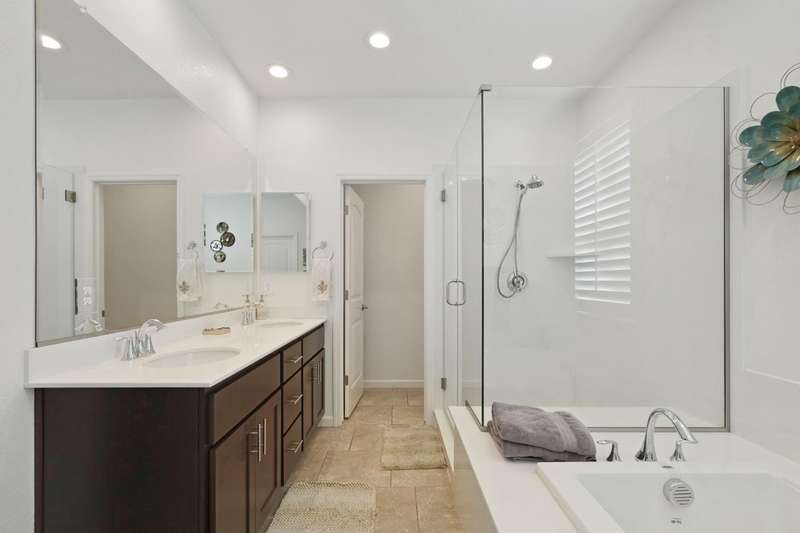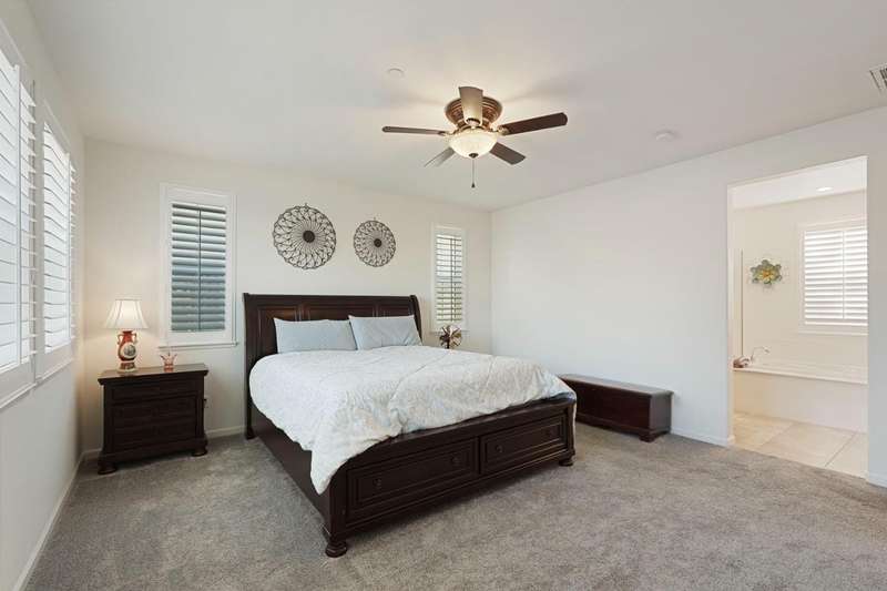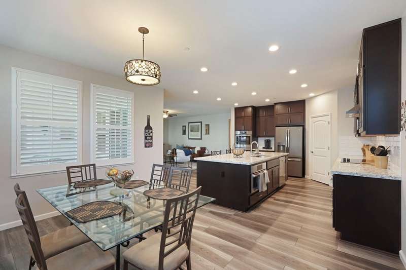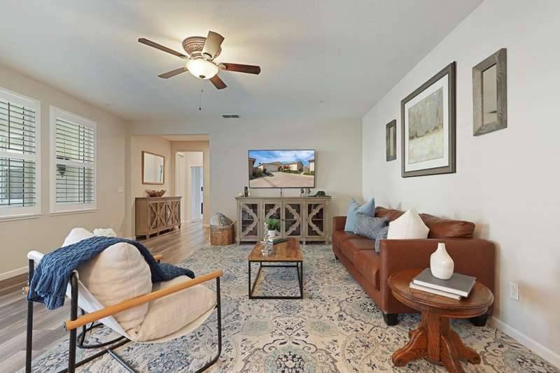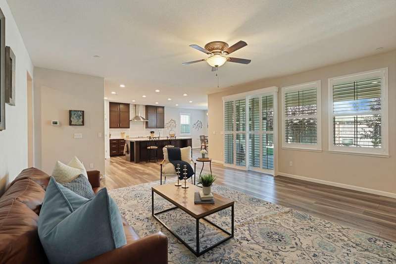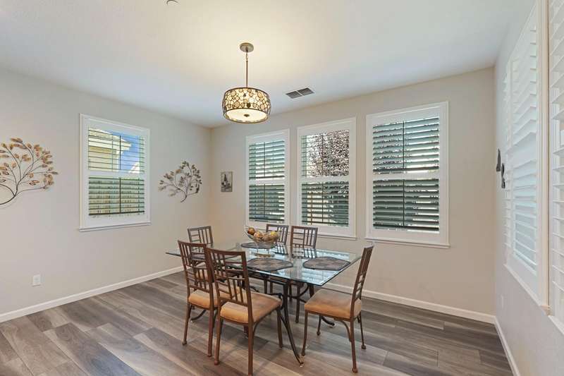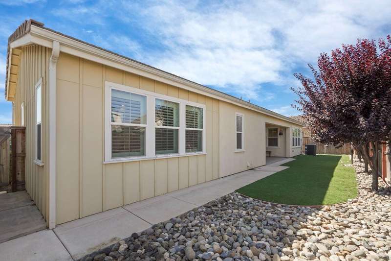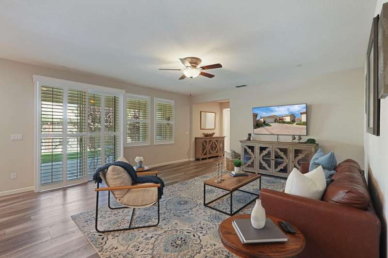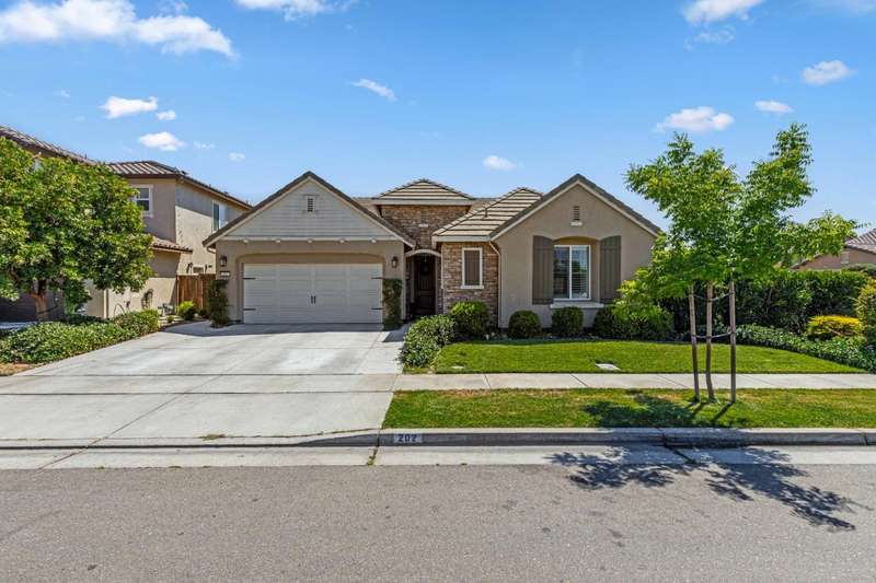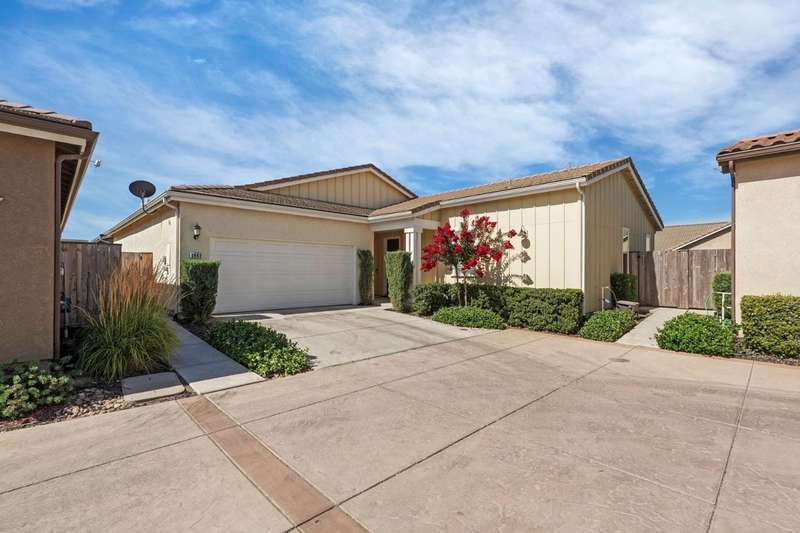 Fall in love with this stunning, like-new 3-bedroom, 2.5-bathroom home located in the highly desirable, gated Harvest Crossing community. Step inside to find a light-filled, open-concept great room with soaring ceilings, luxury vinyl flooring, and a stylish neutral color palette that complements any decor. The beautiful spacious kitchen features stainless steel appliances and a large granite island, perfect for everyday living and effortless entertaining. Enjoy plantation shutters throughout, and a low-maintenance backyard with a covered patio for relaxing or dining al fresco. Just a short stroll to Wine and Roses spa and scenic Lodi Lake, this move in ready home offers the perfect blend of comfort, convenience, and charm. Clear roof and pest report! Don't miss out on this one!