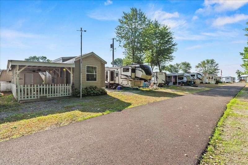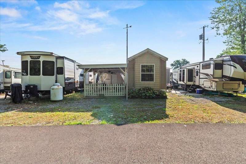 Welcome to Cherokee Landing! Follow the long lane back to your secluded oasis escape then, kick back and relax. This park model is right across from the inlet for fishing and just a short walk to the dock, making lake life even easier. Overflow parking is just outside the gated entry with more parking just across from the home. The large, covered concrete patio offers ample space for hosting. The refrigerator in the shed stays, as well as, most of the furnishings. The picket fencing across the front has been made to be removable to store your boat under the covering during the winter months. The boat dock was just rebuilt for safety of use. The sleeper sofa and 40 gallon water heater provide the ability to have multiple guests without the worry, along with the double loft that holds two queen beds. Call today for your slice of heaven here at the lake!