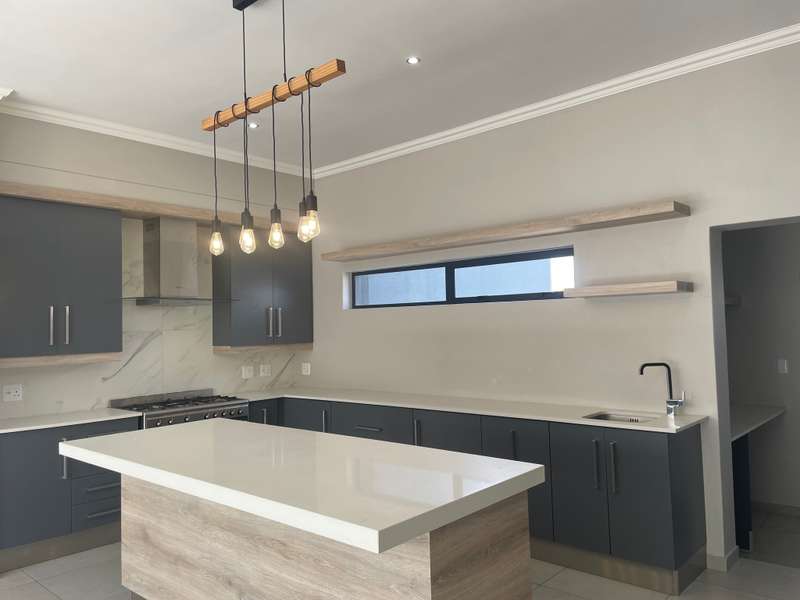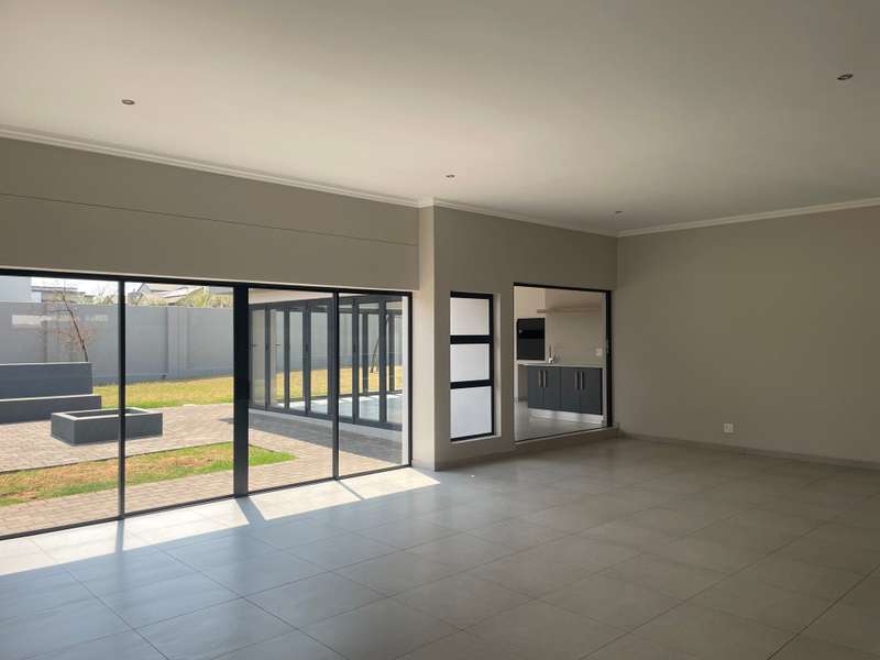 Exquisite and Very Spacious 4 Beds Single Story open pan home. The open-plan kitchen, dining room, and lounge area seamlessly flow into the covered braai area and a second lounge, creating an ideal space for entertaining and relaxation. Boasting 4 spacious bedrooms and 3 en-suite plus full guest bathroom, this home is perfect for modern family living. The open-plan lounge and dining areas are warm and inviting, complemented by a beautifully designed kitchen featuring a separate kitchenette, pantry, and scullery—ideal for both everyday living and entertaining. The master bedroom is a true retreat, complete with a luxurious walk-in closet and a beautifully appointed en-suite bathroom. A dedicated study or office offers a private and quiet space for remote work YES! YES! no transfer duty Features: 4 en-suite bedrooms Open-plan kitchen and living area Spacious Office/Study Smeg Stove Separate scullery Enclosed patio with built-in braai Boma Generous garden 3 automated garages Full staff accommodation Single-level Midstream Meadows is an established residential estate and part of the Greater Midstream Estate. Midstream offers excellent security, two shopping centres with restaurants, there are two primary schools, and Midstream College. The estate supports a relaxed and secure lifestyle. With extensive green spaces, parks, well-maintained infrastructure and excellent security, it provides for a relaxed lifestyle.