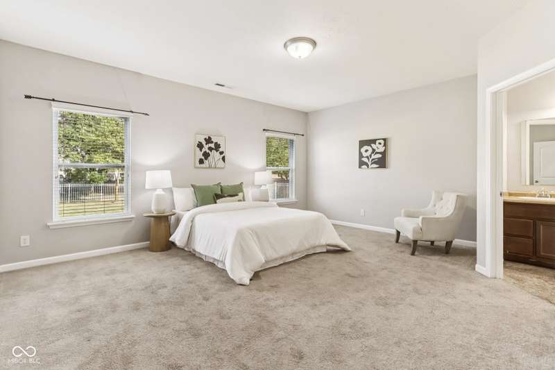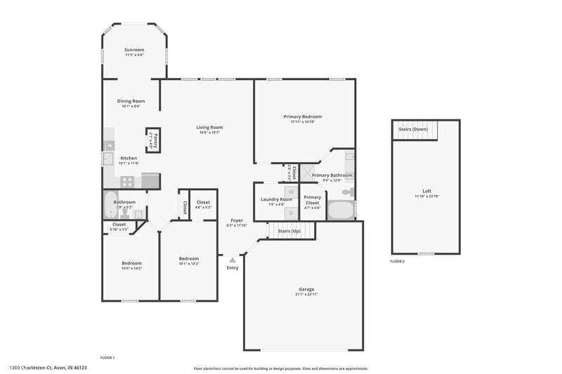Located in desirable Avon, this 3-bedroom, 2-bath ranch with loft offers over 2,100 sq. ft. of inviting living space. An open-concept design with vaulted ceilings fills the home with natural light, while the eat-in kitchen features stainless steel appliances, plenty of counter space, and flows easily into the dining area and cozy sunroom. The main level includes two spacious spare bedrooms, a full bath, and a primary suite with walk-in closet, dual vanities, and soaking tub. Upstairs, a versatile loft adds a bonus space or fourth bedroom! Enjoy a private, fenced backyard with a patio -perfect for relaxing or entertaining. A two-car garage with extra storage completes this move-in ready home.