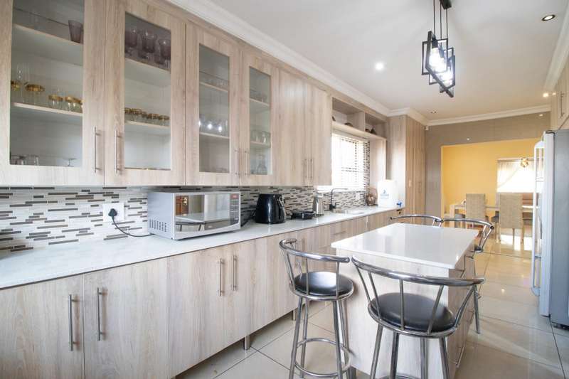 Nestled in a desirable neighborhood, this stunning home boasts unparalleled space and elegance, perfect for luxurious family living. Featuring 6 generously sized bedrooms and 4 modern bathrooms, including 2 en suite, this property effortlessly combines comfort and sophistication. The main bedroom is a true retreat, complete with a walk-in closet and ample natural light. With 3 lounges, there?ÇÖs no shortage of space to relax or entertain guests, while the entrance hall and reception area provide a grand welcome. The kitchen, complete with a scullery, is designed for both functionality and style, ideal for culinary enthusiasts. Step outside to discover a beautifully landscaped garden, paving, and a sparkling pool, perfect for creating lasting memories with family and friends. The balcony offers sweeping views and a serene space to unwind, while the pet-friendly policy ensures that every member of the family feels at home. Additional features include an access gate, built-in cupboards throughout, an alarm system for added security, and a guest toilet for convenience. This exceptional property is a rare gem that truly has it all?Çödon?ÇÖt miss your chance to call it home!