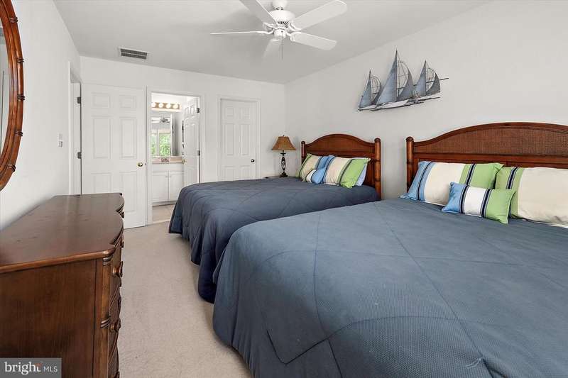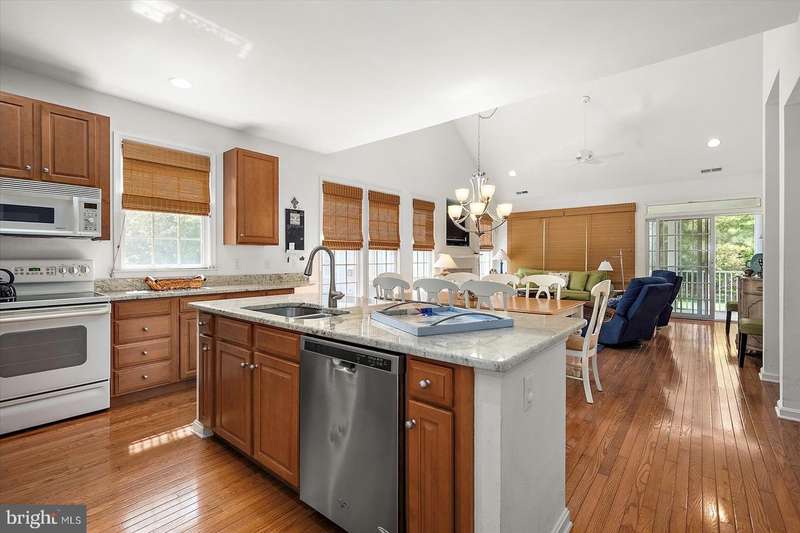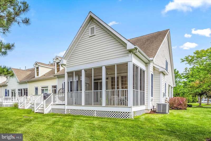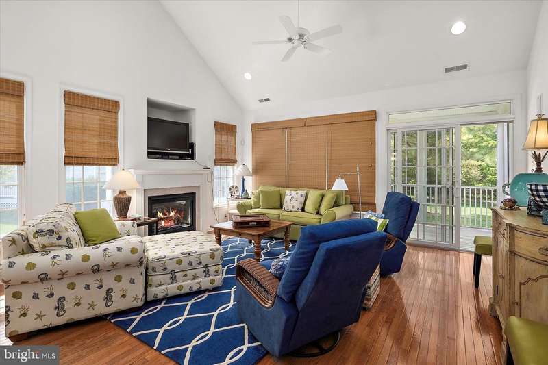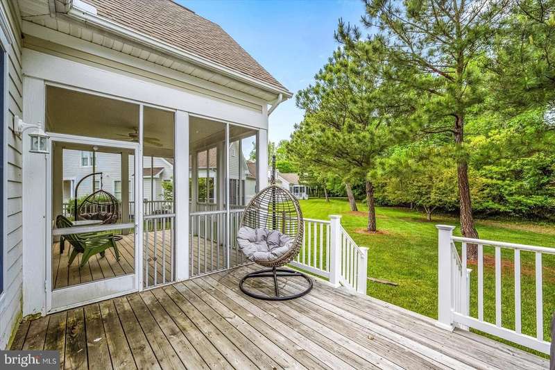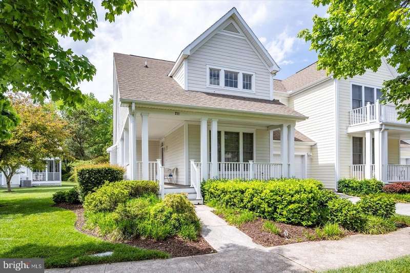 This beautiful end unit carriage house is located on a premium lot backing to a tranquil treed setting, allowing you to enjoy the quiet while also taking in the wildlife. Step inside to find soaring cathedral ceilings, abundant natural light pouring in from the many windows, and hardwood floors throughout the main level. The large kitchen boasts plenty of counter space with granite counter tops, a pantry, and an oversized island with breakfast bar, perfect for quick meals before the beach. The open floor plan is ideal for entertaining with a large living room centered around the gas fireplace, a dining area for sit-down meals, and a separate family room for added living space. On the main level you'll find the master suite with peaceful views of the trees, a walk-in closet, and an en-suite bath with double sinks and a tile shower. Upstairs you'll enjoy a second master suite with an en-suite bath and a large walk-in closet. The two guest bedrooms offer plenty of space for friends and family, and both rooms have direct access to the jack-and-jill style full guest bath. There's plenty of outdoor space to enjoy with a wrap front porch, a roomy screened porch, and a large sundeck overlooking the trees. The premier community of Bear Trap offers everything that you're looking for in a community at the beach, including indoor and outdoor pools, a homeowner's-only pool, the popular Bear Trap Dunes 27-hole golf course, a beach shuttle to take you into downtown Bethany Beach, volleyball, basketball, tennis, and pickleball courts, a fitness center, tot lot, on-site restaurant with stunning terrace overlooking the golf course, walking paths, and so much more! Whether you're looking for a beach retreat, a place to call home, or a fantastic investment property, you've found it at 211 October Glory Ave.