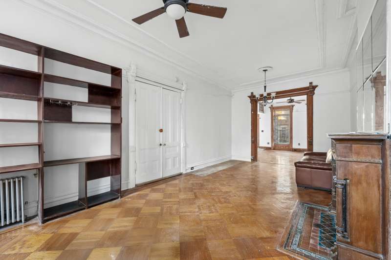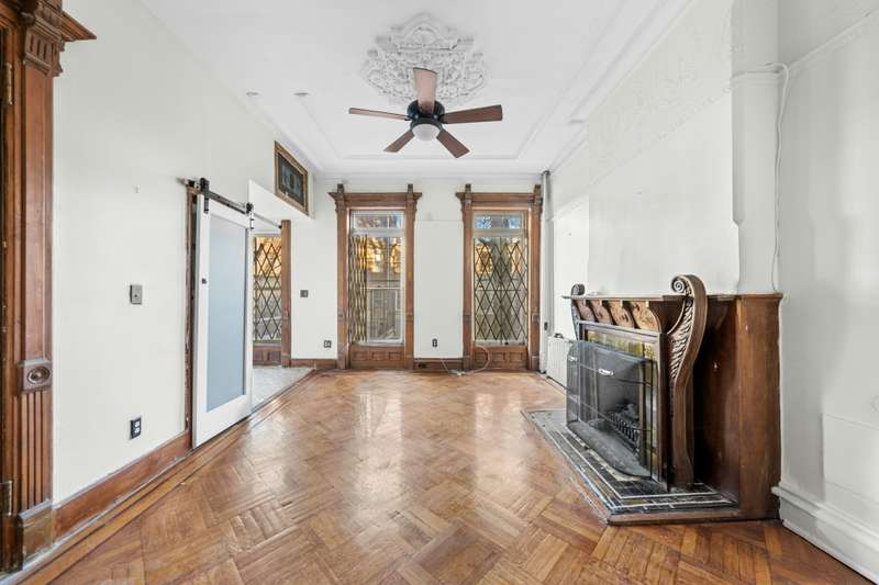 This stately townhouse stands out with its impressive fa ade and a treasure trove of preserved interior details, including seven intricately carved wood fireplaces, original pocket doors, ornate wainscoting, parquet wood floors, plaster ceiling medallions, pocket shutters, brass doorknobs, and exquisite plaster reliefs that speak to its historic charm and craftsmanship.
