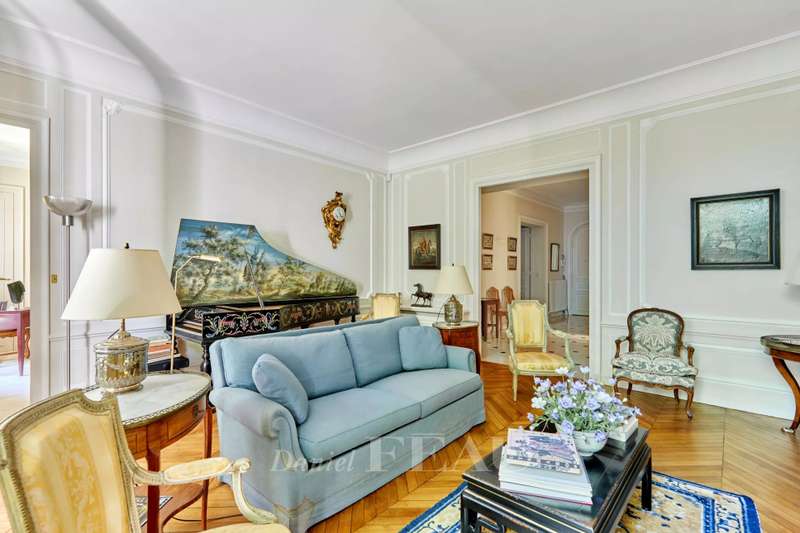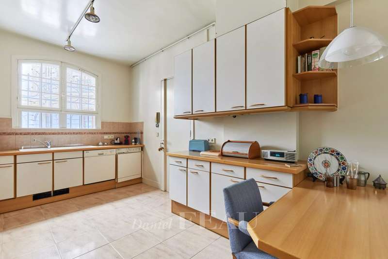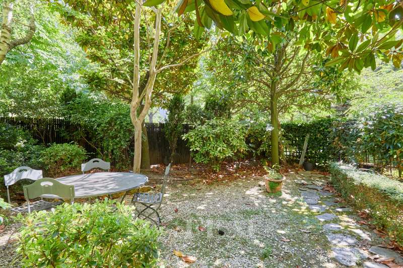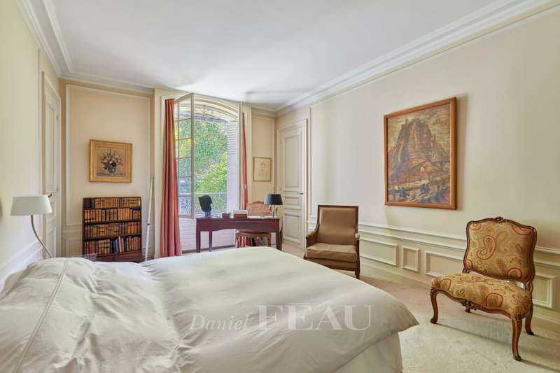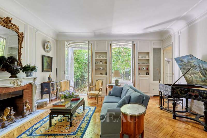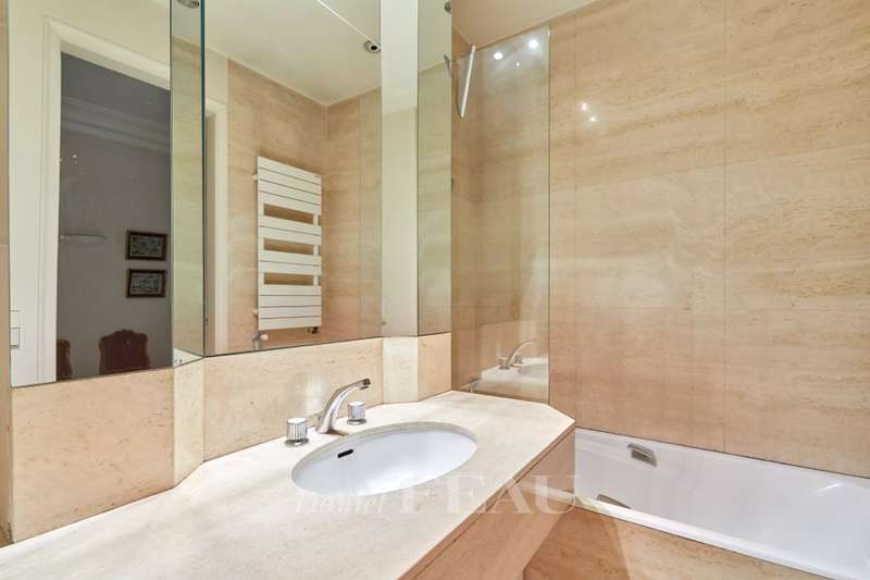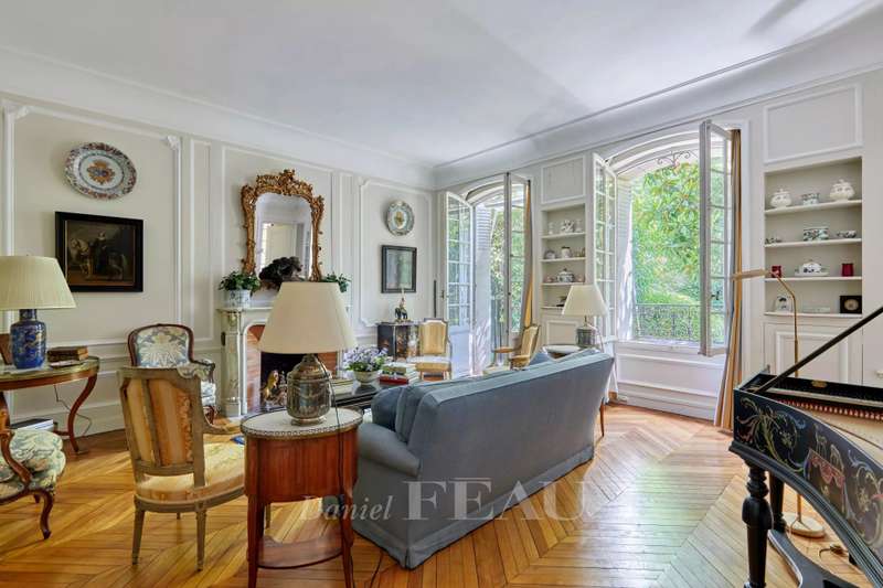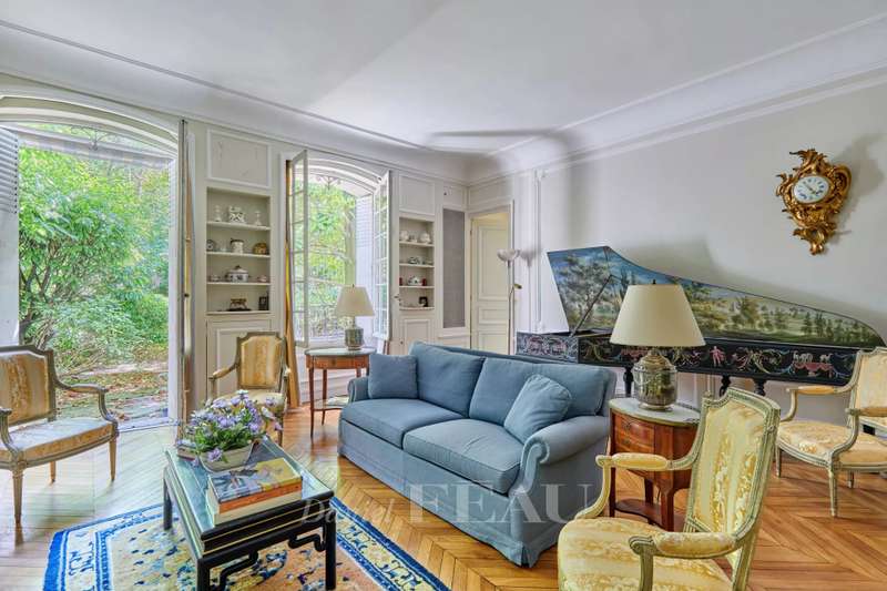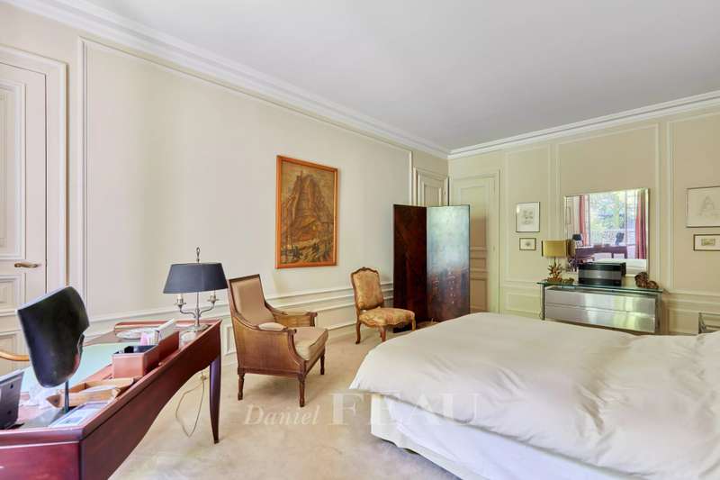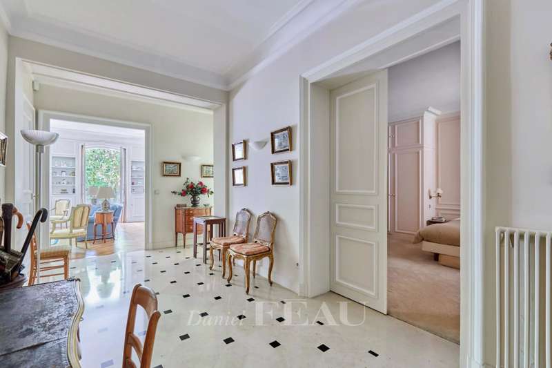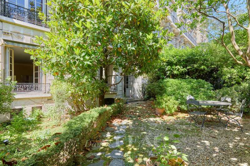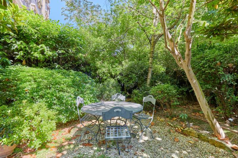 Avenue Henri Martin. This garden-level apartment bathed in sunshine is in a prestigious Haussmannian building with elegant common areas. An entrance hall leads to a double living/reception room opening onto a south-facing landscaped garden, a kitchen with dining facilities, a bedroom overlooking the garden, a bathroom and a second bedroom. With an 8.75 sqm maid’s bedroom, a 6.25 sqm storage room and a cellar.