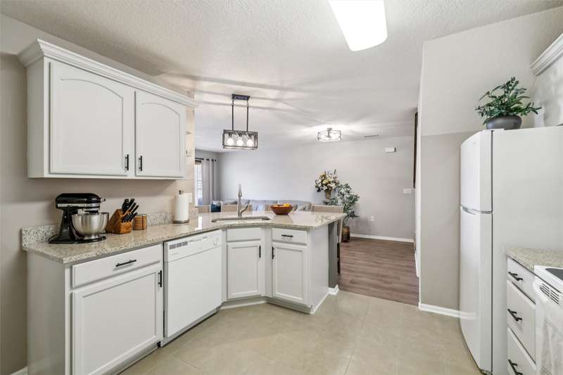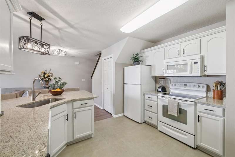 Welcome to this beautifully updated 2 bedroom, 2 bathroom townhouse offering 1,308 sq ft of modern comfort and thoughtful upgrades throughout. Fresh paint spans the entire home, complementing the newly installed flooring in the kitchen and both bathrooms. The stunning kitchen features new granite countertops, and upgraded cabinetry complete with crown molding, custom end shelves, and a finished build-out above the refrigerator. Upgraded window treatments have been added to every room, providing both style and privacy. The garage has also been refreshed with new weather stripping and a fresh coat of paint, making this home truly move-in ready. With its upgraded finishes and well-designed layout, this townhouse offers the perfect blend of convenience, beauty, and low-maintenance living.