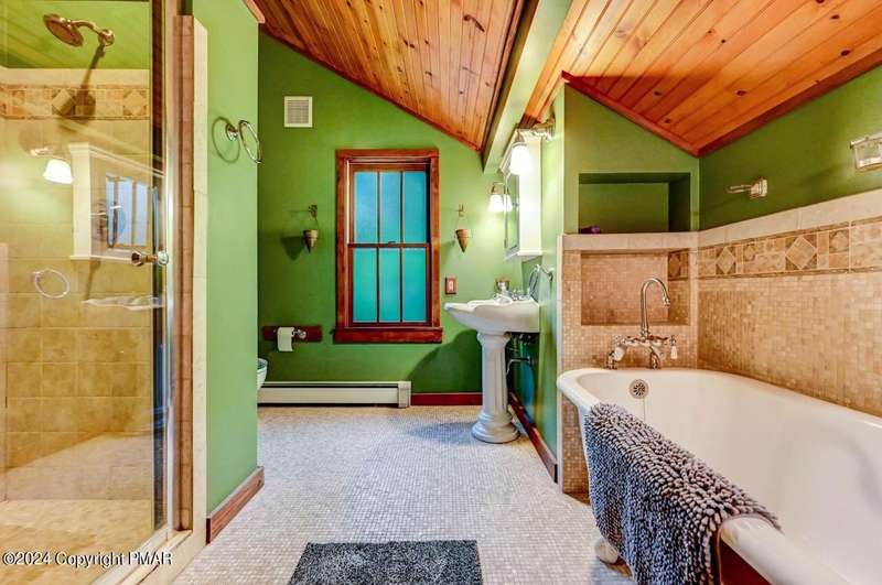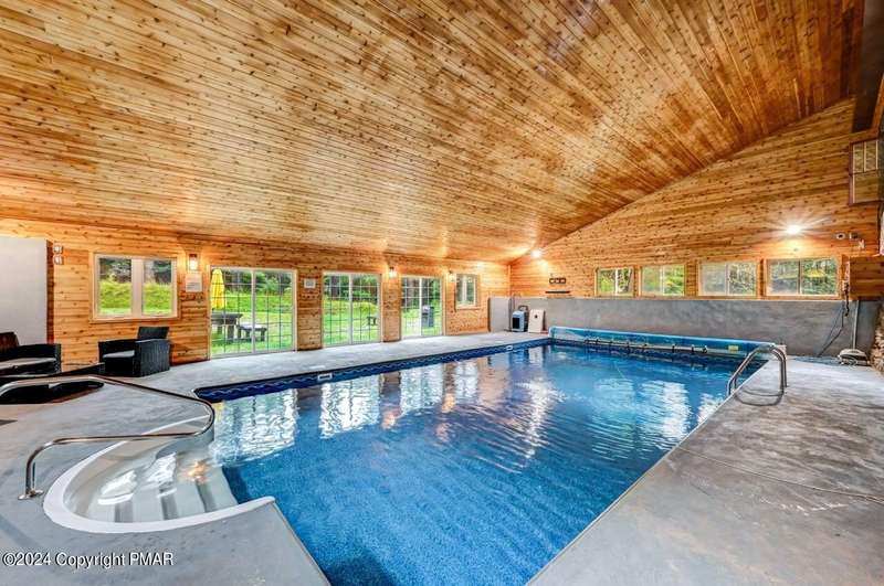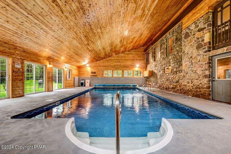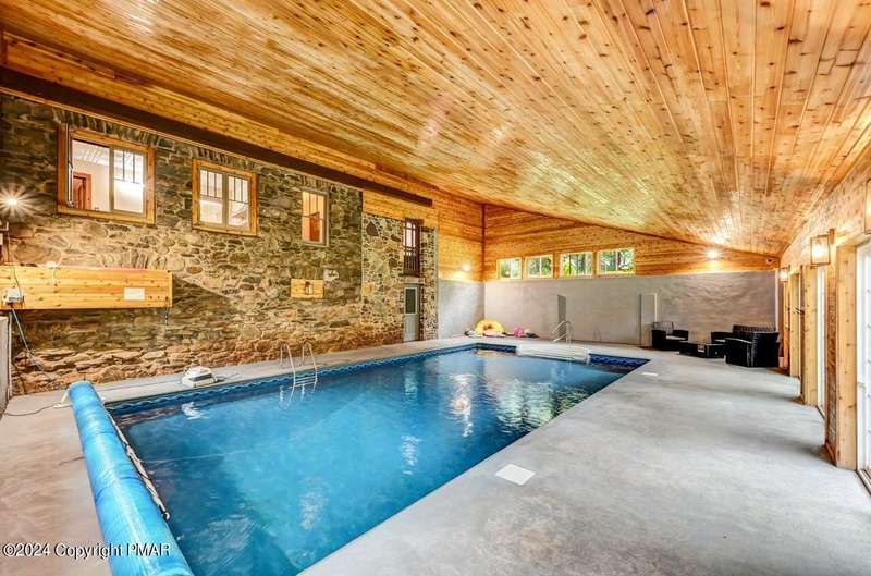 INDOOR POOL only one year old. There's not another like this one! With over 4,000 sq. ft. of living space on 1.43 acres, this property is a true gem. Architectural elements evoke warmth and comfort. Enjoy the lower-level game room with a pool table and mini-bar, or indulge in the indoor pool room, perfect for family fun and hosting guests. After a long day, retreat to the master suite, complete with a fireplace and a private bath featuring a clawfoot tub and separate shower. The modern kitchen is equipped with stainless steel appliances. There is a separate detached apartment, offering independent living with the convenience of being next door. Property is permitted by state and local municipalities for short-term rentals.