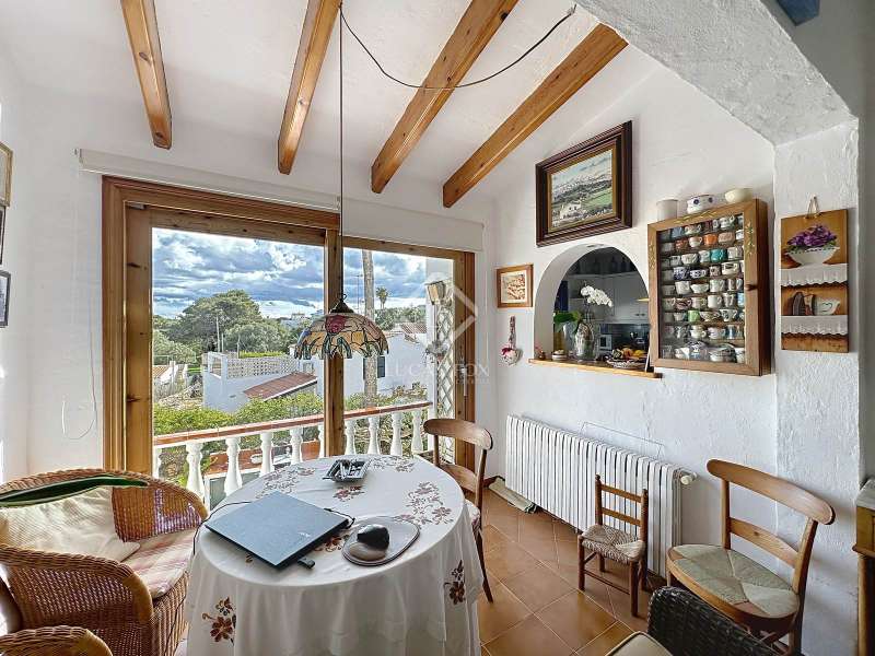 Lucas Fox presents this beautiful, typical Menorcan house with three floors, built on a 493 m² plot , with a total built area of 223 m². From the main access to the property, we see the north facade of the spacious house. It has several entrances that lead to the two-car garage, the interior of the house, and the two side entrances to the garden. If we enter through the main door, we find ourselves on the ground floor with a beautiful and bright entrance that leads us to a spacious bedroom with a window overlooking the north garden and another double bedroom , currently used as an study and workshop, which overlooks the south garden . There is also a storage room, a full bathroom , and a utility room. From the main entrance, a staircase leads to the first floor , where we find a very spacious living room with a fireplace, a fully equipped kitchen overlooking the garden , and a relaxation and reading area with views and access to the terrace with exterior access to the south garden . From this area, up three steps, we find three more bedrooms: two doubles and one single. There is also a full bathroom . The spiral staircase leads to the top floor, with a unique study/ storage room and a terrace with unobstructed views. Exterior, there's a well-kept garden. On the south-facing side, a porch has been built that can be used in winter for family gatherings and outdoor meals, but without getting too cold. There are also fruit trees and a vegetable garden. The entire house has air conditioning and oil heating. It also has a solar panel system for electricity and water heating, as well as a cistern for rainwater collection. The property is located in one of the quietest and safest residential areas on the island. It's undoubtedly the best place to live if you're looking for peace and convenience, just minutes from Mahón and all kinds of facilities and schools. Don't hesitate to call us for a viewing or more information.