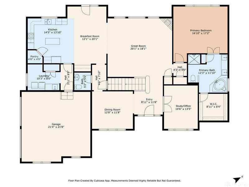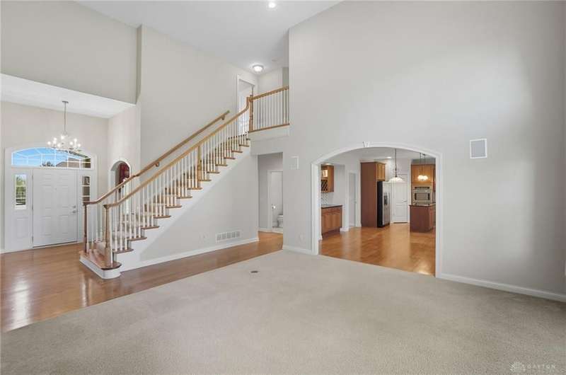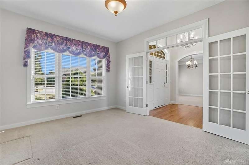 Welcome to a custom-built, 4-bedroom, 2.1-bath brick two-story residence by Bill Simms, offering nearly 3,850 square feet of meticulously crafted living space. Situated on a private, 0.54-acre lot with panoramic golf course views, this home is an oasis of spacious living. Step into the soaring two-story entry, which opens to a breathtaking, cathedraled great room framed by a wall of windows that bathe the home in natural light. The open-concept floor plan flows seamlessly from the great room to the inviting breakfast area and gourmet kitchen. Designed for both cooking and conversation, the kitchen features granite countertops, 42-inch cabinetry, and a walk-in pantry. A luxurious first-floor primary suite, complete with a tray ceiling and an adjoining bath, provides a private retreat. Three additional bedrooms on the second floor comfortably accommodate family and guests. Outside, an expansive deck is the perfect spot for enjoying the scenic views. The 3-car garage offers ample space for vehicles and storage. Noteworthy updates include a new AC system (2020), a water heater (2023), and a reverse osmosis system for filtered water. The finished lower level provides even more versatile space. This exceptional property blends everyday comfort with convenient access to local attractions like The Narrows Reserve, Country Club of the North, and The Greene. Call now before you are too late, and someone else becomes the next proud owner!