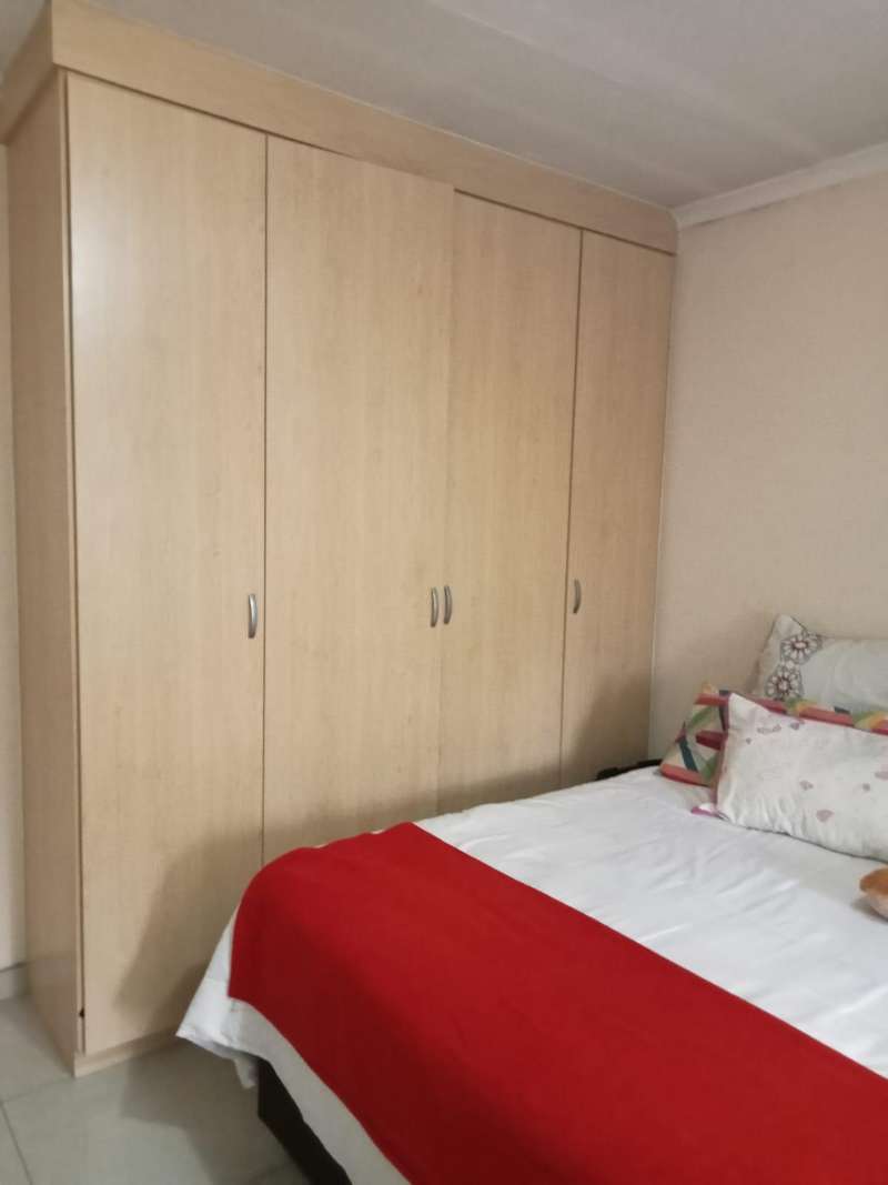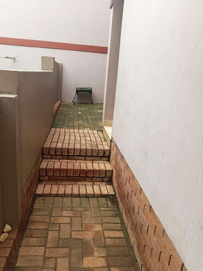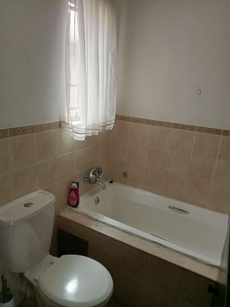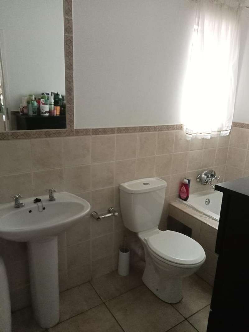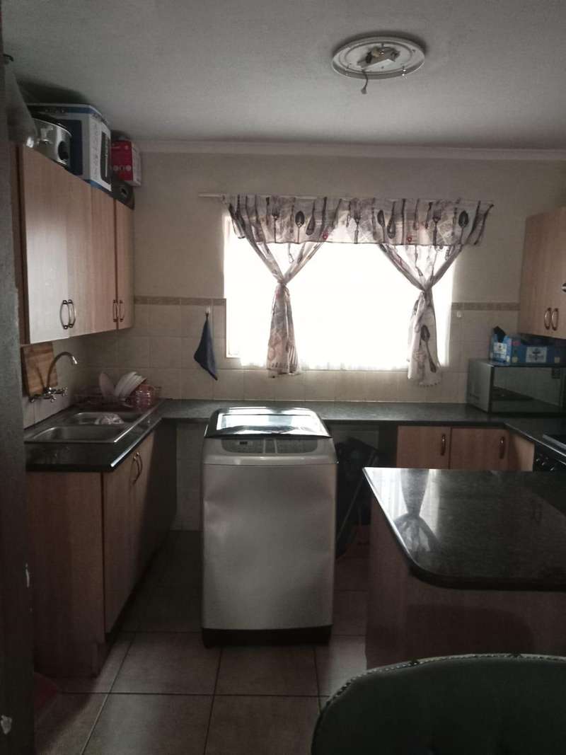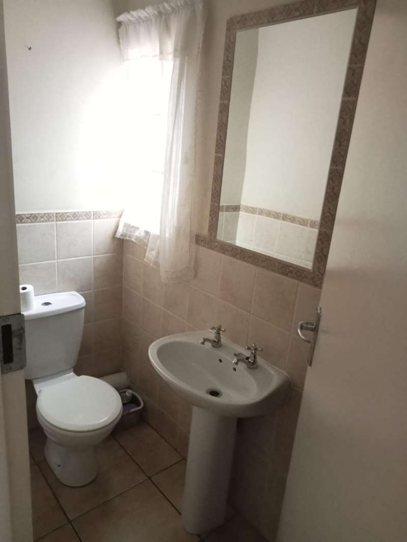 Immaculate 3 bedroom townhouse located in a beautiful area, with a river flowing inside the complex giving a beautiful environment. It consists of 2 bedrooms, 2 bathrooms, upstairs, a 3rd bedroom on the ground floor and a toilet, open plan kitchen and lounge, double garages enough space for garden.