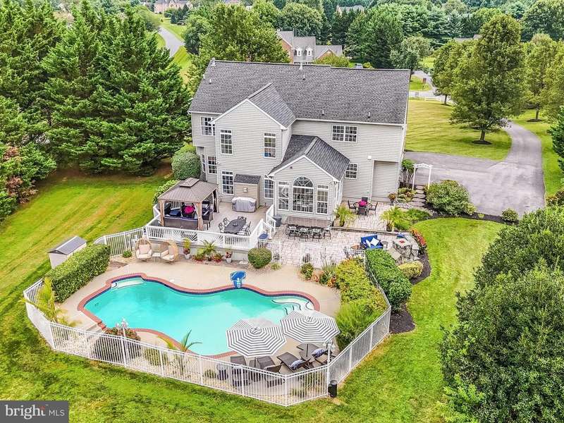 Welcome to this beautifully designed 4-bedroom, 3.5 bath home that effortlessly combines luxury and comfort. Nestled on a 1.4 acre lot in a prime location, this property offers over 5400 square feet of spacious living areas and a private oasis that's perfect for both relaxation and entertaining. The open concept family room is the heart of the home, complete with a cozy fireplace perfect for gathering. Main level features inviting living room and dining room in addition to home office overlooking the backyard. Spacious, updated kitchen with Stainless Steel appliances, sleek Quartzite natural stone counter tops, large island and wine bar. Step into the light-filled sunroom that offers a peaceful retreat with views of the lush backyard, making it an ideal spot for relaxing with a book or enjoying morning coffee. The finished basement is an entertainer's paradise, with a stylish bar area ideal for hosting friends and family. Outside you'll find a large patio, deck, sparkling pool, stone fireplace and bar with granite countertop making this the perfect space for outdoor relaxation and summer entertaining. Private backyard overlooks open space with beautiful views of the sunset! This home offers the ultimate in modern living with every detail designed for convenience and luxury - look no further your home is here!