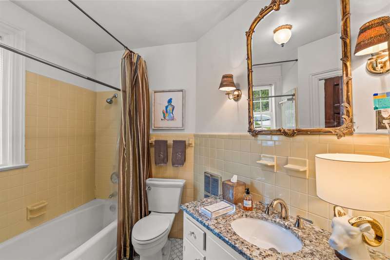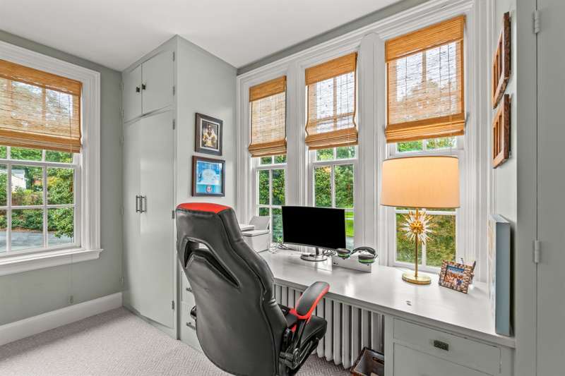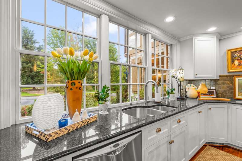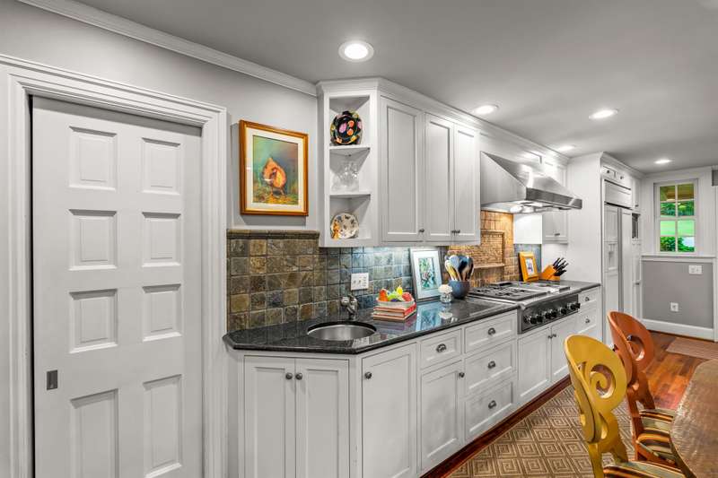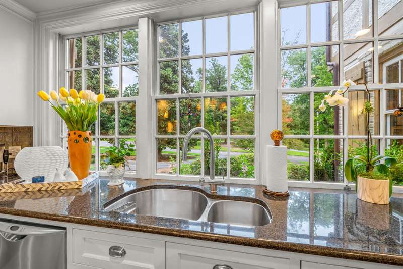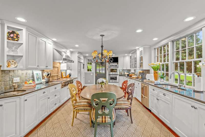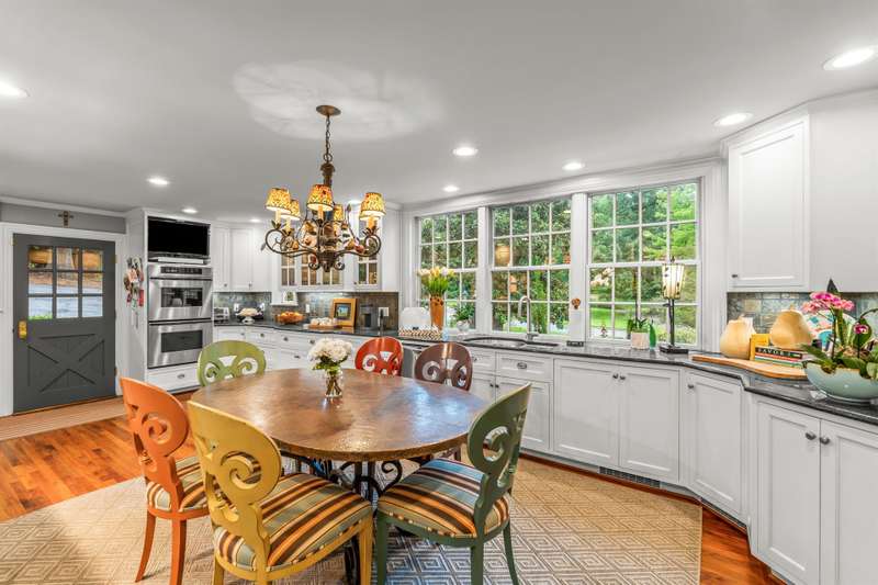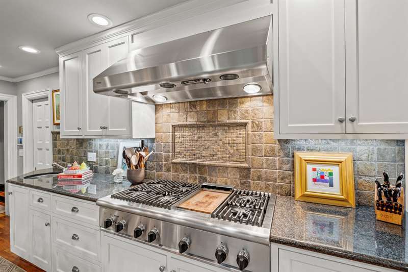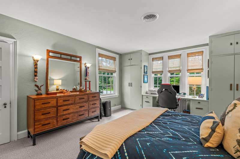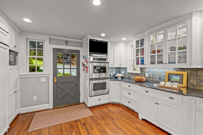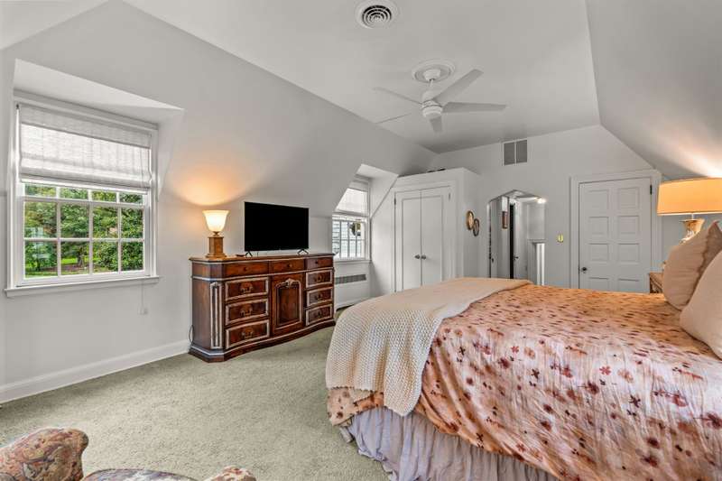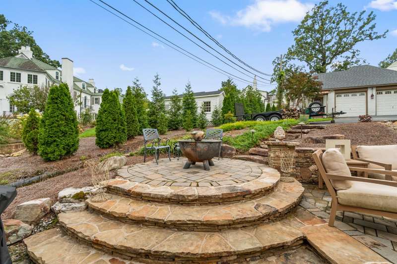 An English Tudor with stunning architectural features. Including arched doorways, exposed wood beams and a prominent stone fireplace in the large open living room. A storybook foyer with marble floor entering into a very versatile floor plan with lots of living space including a piano nook overlooking the living room that could be used as an office. As well as a sitting room nestled in the main level ensuite bedroom. The oversized family room has built-ins, wormy maple hardwoods and a wet bar closet all leading to a large stone patio with a water feature. Property includes three lots appointed with stone walls, slate walk-ways, gorgeous landscaping and a concrete pad with a basketball goal. The detached garage has a much needed storage room! The updated covered porch is like a vacation getaway right at home perfect for watching the sunrise. The kitchen is large enough for any size gathering and includes a Thermador six burner gas stove and double ovens.