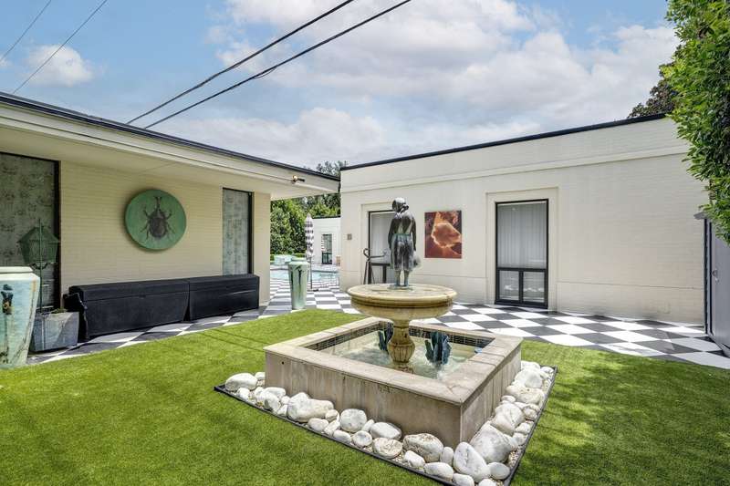 This stunning River Oaks home, initially designed by renowned architect John F. Staub, has been beautifully transformed. The first floor boasts light-filled rooms with expansive glass walls, offering views of lush gardens and an outdoor pool. The formal living and dining rooms are perfect for gatherings and feature ample wall space for art. The luxurious primary suite includes a spacious walk-in closet and dressing area. A sophisticated library and cozy sitting room provide quiet spaces, while the kitchen is discreetly tucked away. On the second floor, two additional bedrooms with en-suite baths ensure a welcoming environment for guests. The separate pool house features a full bath and a party room with an expanded bar, perfect for entertaining. The gardens are a masterpiece with lush turf, sparkling fountains, and whimsical ironwork sculptures. A private guest house with a mini kitchen and full bath adds convenience, and a full-house generator ensures peace of mind. All per Seller