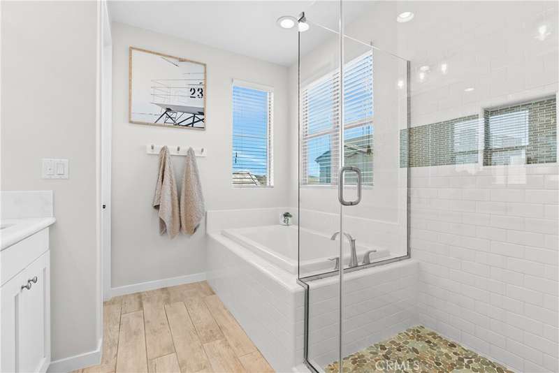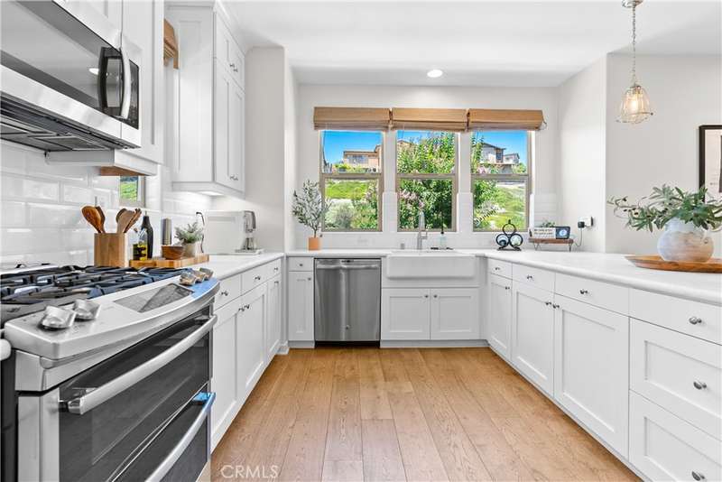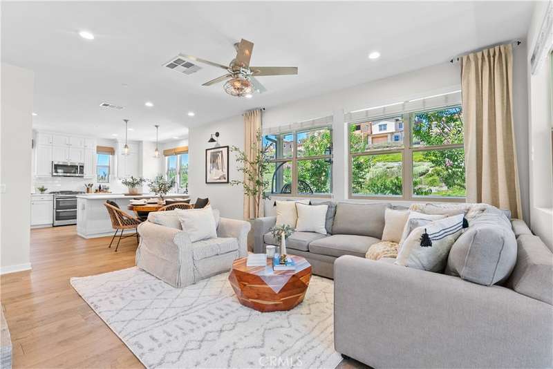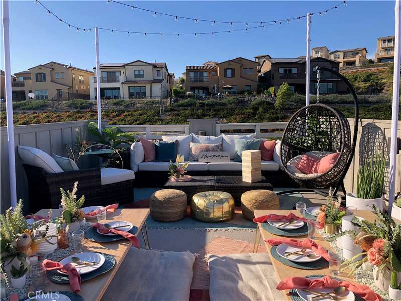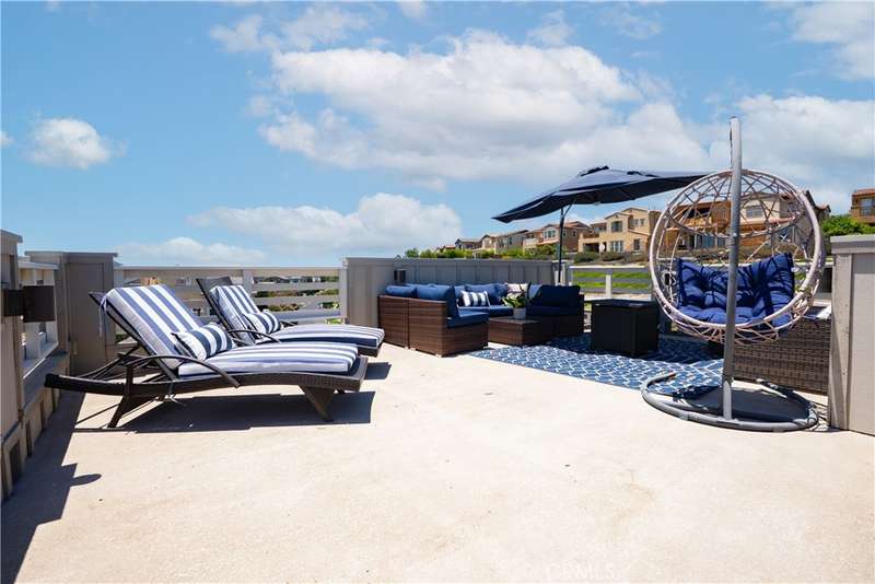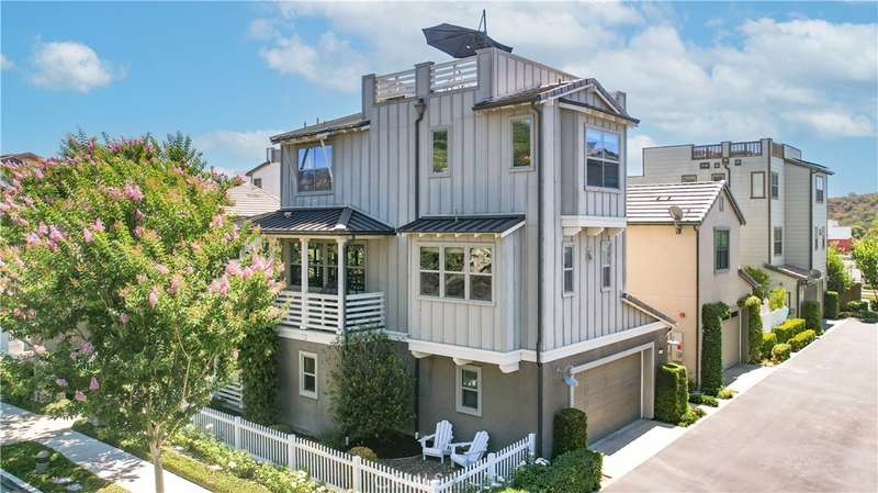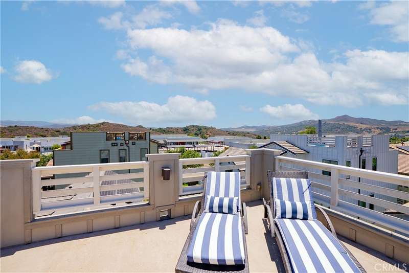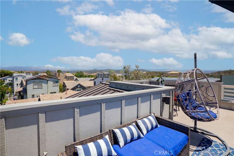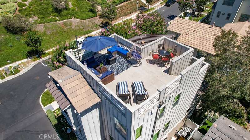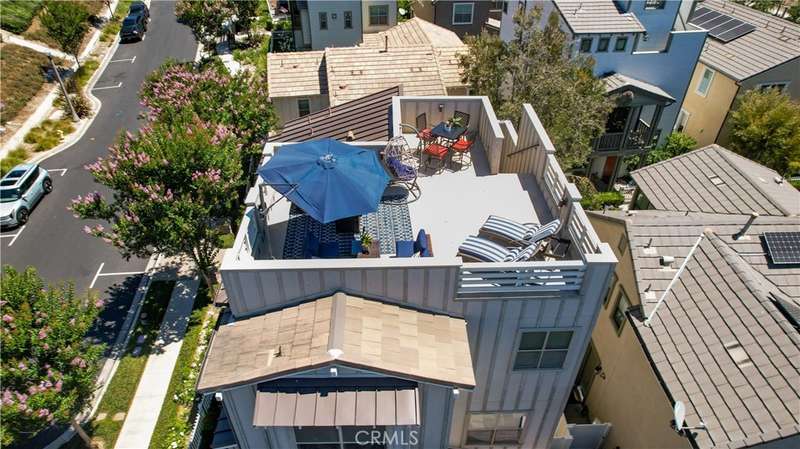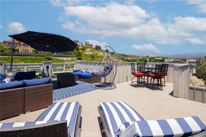 Seller to credit buyer $6,000 towards closing costs at close of escrow. Welcome to your dream home in Esencia! This impeccably designed Plan 3 residence is in the highly desirable Trellis enclave in the award-winning community of Rancho Mission Viejo. This 4-bedroom, 4-bathroom residence blends modern luxury with everyday functionality. Located in a private and peaceful setting, it boasts an expansive rooftop deck with breathtaking hillside and sunset views perfect for unwinding or hosting under the stars. Inside, enjoy over $100,000 in premium upgrades, including Namibia mystery white marble countertops, Monarch Plank European oak hardwood flooring, custom closet systems, dovetail soft-close cabinetry, and top-tier appliances throughout. The first level welcomes you with a full bedroom and bathroom ideal for guests, office space, or multigenerational living. Upstairs, the heart of the home unfolds into an open-concept great room and chef's kitchen, complete with a white porcelain farmhouse sink, beveled subway tile backsplash, double ovens, stacked cabinetry, and spacious marble island. A bright wraparound porch and another bedroom with full guest bath complete this level, offering the perfect layout for both everyday living and entertaining. The third level features the tranquil primary suite, showcasing a custom walk-in closet and spa-like bathroom with pebble stone shower flooring, soaking tub, and dual vanities. A 4th bedroom and full bathroom are also conveniently located on this floor. Finally, head up to your private rooftop retreat, an entertainer's dream with panoramic views and space to relax, dine, and gather. SELLER IS WILLING TO leave the rooftop furniture. This turnkey residence delivers luxury, privacy, and flexibility all in one beautiful package. Exclusive to Rancho Mission Viejo residents are all amenities in the Villages of Sendero, Esencia, Rienda, and future Villages. There are community amenities for all from breath-taking resort-style pools and spas, Esencia school K-8, community farms, fitness centers, guest house, putting green, bocce ball courts, tennis and pickle ball courts, playgrounds, coffee shop, fire pits, an arcade and so much more!