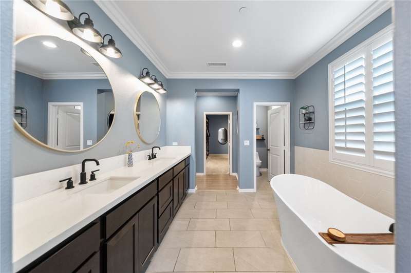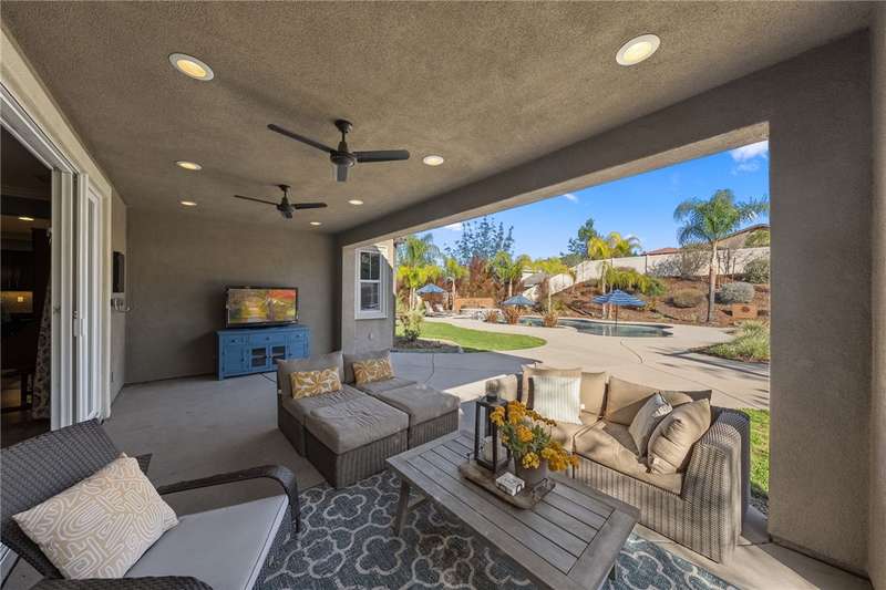 Absolute Must See Beach Entry Pool, Spa, Solar Home in Morningstar Ranch! Located near the Temecula Wine Country - Beautiful 4 Bedroom, 3.5 Bath,+ Large Office and Upstairs Bonus Room. This home boasts top quality upgrades. Nest, Ring, Crown Moulding, Shutters, Tankless Water, Sensor Lighting, and Fixtures throughout. This in High Demand open floor plan has a PRIMARY PRIVATE WING DOWNSTAIRS, Upgraded Spa Like Bathroom with Heated Floors, Dual Sinks, Separate Tub and Shower. You'll love the OVERSIZED impressive walk in closet with custom organizers. Family and Friends will enjoy spending time in your spacious open Great Room with a cozy fireplace and Custom Media Built in. A true Gourmet Kitchen with a Massive Center Island, built-in Newer Stainless Appliances, Bosch DW, 5 Burner Stove, Walk-in Pantry, and more. Did I mention an EXTRA BONUS PREP KITCHEN with tons of Cabinets and Laundry area. Open to Kitchen is more delightful room to entertain in a Spacious Formal/Casual Eating Area. Large Office/Bedroom is downstairs as well. There is so much for you to fall in love with. Upstairs you will find a Large Sitting Room/Media/Loft at the top of the stairs, along with THREE other bedrooms and a Full Bath. ONE UPSTAIRS SUITE ROOM with Private Bath and more storage behind a Custom Barn Door. Your Aha! moment will be the breathtaking entertaining backyard. A 3 car garage with storage and a leased solar system provides discounted electric costs.
