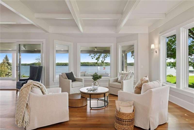 A stunning full renovation where timeless 1900s charm meets 2025 luxury on 150 feet of prime Minnetonka Beach lake shore. Completely reimagined from the studs up, this exquisite home preserves its early 1900s character while being fully modernized to today’s highest standards. Thoughtfully redesigned by acclaimed Lake Minnetonka architect Mike Sharratt, every inch of this 18-month renovation was crafted to maximize breathtaking lake views from as many rooms as possible. Highlights include: An expansive kitchen with a Wolf 48” range, Sub-Zero refrigerator, oversized walk-in pantry, built-in 8-person dining banquette, and a large island with seating for four. Formal dining room includes a dedicated bar area with sink, Sub-Zero 100-bottle wine fridge, and beverage coolers. Other main floor highlights include main floor laundry room with sink and custom cabinetry, 3 bedrooms, 3 bathrooms and a one of a kind 46 foot wide screened in porch with priceless views. The exceptional upper level primary suite spans more than 40+ feet of lake-facing windows for panoramic views of Lafayette Bay, Big Island and walks out to a private 600+ square foot, maintenance free sun deck. Other features of the primary suite include a 225’ walk-in closet with custom cabinetry, an incredibly spacious primary tiled bath with separate vanities, tiled shower, soaking tub and 2nd laundry room. The lower levels are highlighted by a fully finished “man cave” with full bar, massive beverage refrigerator, multiple flat screen TVs, ready for game day or movie night. Custom mudroom with built-in lockers for everyday functionality. Other features of the renovation include: Spray foam insulation for top-tier efficiency, All-new windows throughout, brand new 4 car garage with integrated upper level 1,100 sq ft studio apartment with kitchenette, ideal for guests, in-laws, or creative office/bonus space. Structural steel beam reinforcement for enhanced integrity Brand-new roof, HardiePlank siding, updated electrical and mechanical systems,