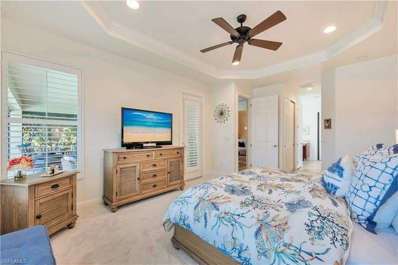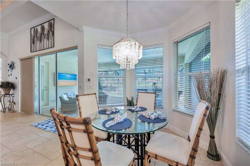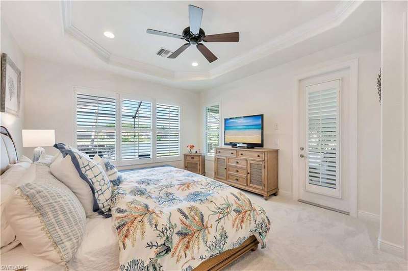 Experience relaxed elegance in this beautifully updated 3-bedroom, 2-bath home, perfectly situated in a quiet, gated community just minutes from downtown Naples and the pristine Gulf beaches. This light-filled residence offers modern living at its finest, with an open, airy design and elegant finishes throughout. Enjoy expansive panoramic lake views with sought-after western exposure-ideal for taking in Naples' breathtaking sunsets. Interior highlights include plantation shutters, crown molding, and coffered ceilings, creating a refined yet comfortable atmosphere. A brand-new whole-house generator, impact-resistant windows, and electric hurricane shutters provide year-round peace of mind. With its seamless blend of style, convenience, and timeless charm, this home is truly move-in ready.