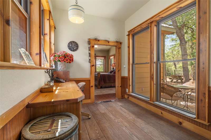 Experience the essence of Texas country living on this serene and secluded 23.45-acre retreat near charming Bastrop. Tucked among a mature tree canopy, this private estate offers a unique blend of heritage and craftsmanship. The custom-built two-story cabin evokes central Texas history with reclaimed wood flooring sourced from a historic Walburg cabin, an original 1950s stove from the Pfluger family homestead, and hand-stripped Bastrop pine columns harvested onsite to support the cathedral ceiling. These authentic details are seamlessly integrated with modern conveniences to create a residence that is both timeless and functional. The cabin is the heart of the property serving as the main dwelling and offering the primary bedroom along with another secondary bedroom and 2.5 baths all on the main level. Additional main level areas include a management center, laundry room, dedicated office/library space, a charming kitchen and large living space with foyer entry. Upstairs is one large open bedroom and bathroom originally intended to serve as a bunkroom that can accommodate multiple sleepers. A separate barndominium provides additional living space ideal for a guest house, rental opportunity, or multigenerational living, complete with an entertainment area. This flexible space offers 2 bedrooms and 2 baths with 2 separate living areas and an open kitchen to living on the main level. With 6 garage bays on property--including a dedicated RV space with hookups--there is ample room for your toys, gear, equipment and adventure essentials. Outdoors, a thoughtfully designed pond supports native wildlife, including bass and ducks, enriching the land's natural beauty. This one-of-a-kind property offers a slow and relaxed lifestyle, yet remains just a few miles from historic Bastrop, the Airport, COTA, Tesla, and the hustle and bustle of downtown Austin. Tractor may convey, see agent for details.