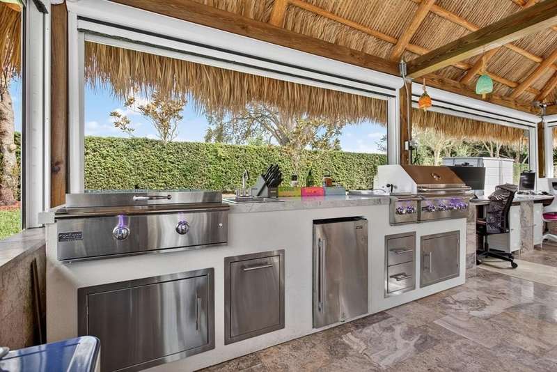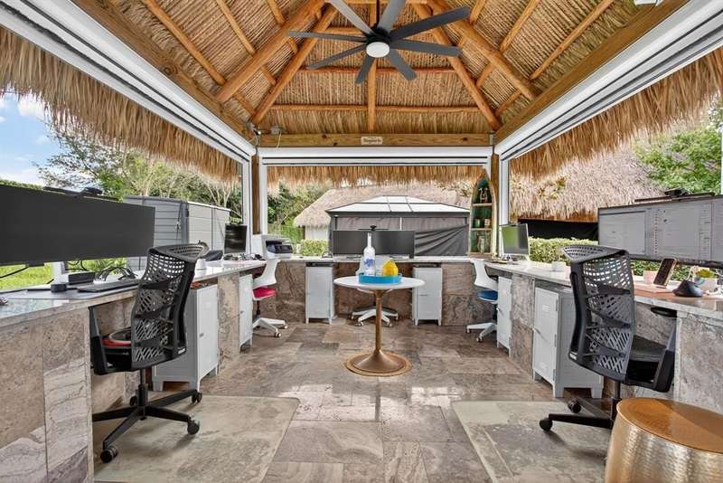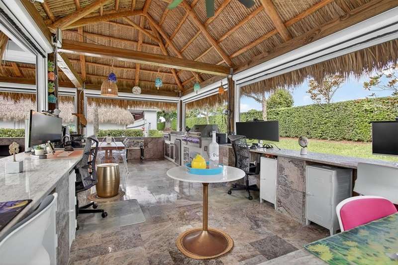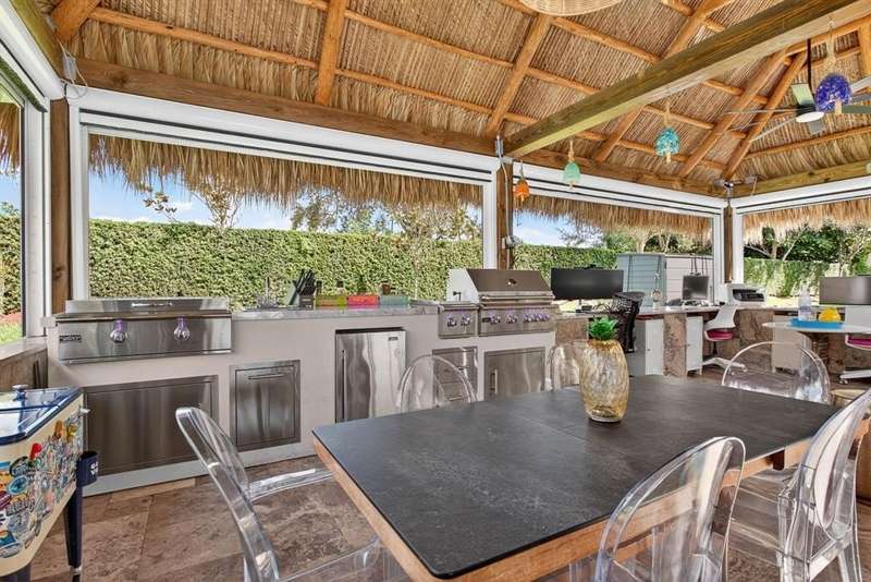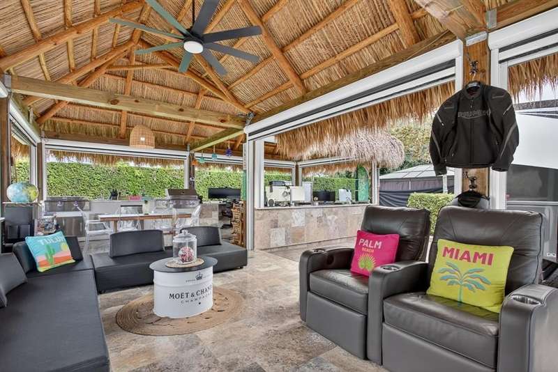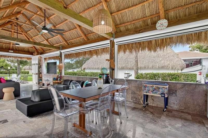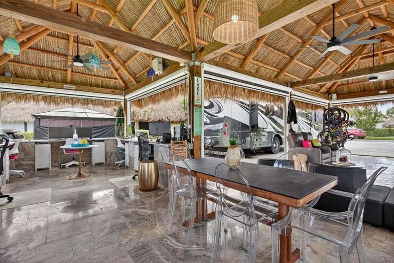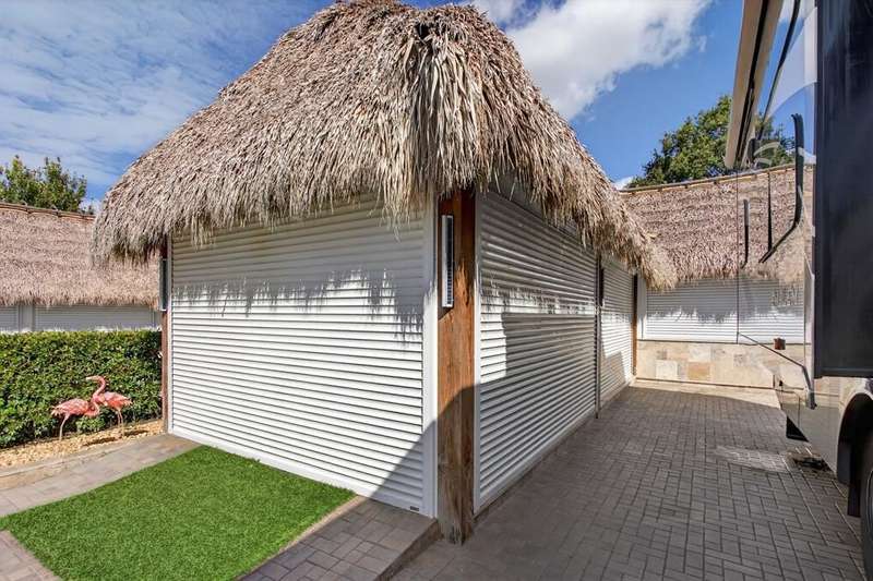 Claim your slice of paradise. Bring your CLASS A motorcoach to AZTEC RV RESORT and settle into the lifestyle you deserve—complete with your own private tiki, perfect for entertaining or unwinding in tropical style. Prime location near beaches, Fort Lauderdale Airport, dining & entertainment. Property features a 4,229 SF lot located in a loop with no rear neighbors, Large L-shaped tiki 30 x 40 with concrete walls and travertine flooring, an outdoor kitchen (Paradise Grill) with cooktop, BBQ, and burner, marble countertop with office/bar section, hurricane-rated screens and shutters, mosquito control system (Swat system), travertine edging around the lot. Newly built in 2023 with permits. Onsite, you will find a state-of-the-art fitness center and a packed calendar of seasonal activities.