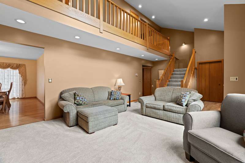 One owner home, pristinely maintained. Welcoming versatile floor plan, vaulted living room ceiling and open rail balcony add to the expansive feel of this custom contemporary. Entertainers delight with generous sized dining room and eat-in cherry kitchen. Main floor family room could be used as a bedroom if needed, Full bath close by. Primary bedroom is super sized with amazing closet and storage space. Customization of this area could provide for exercise/office area. Dedicated bath provides a jetted tub as well as shower. 3 additional bedrooms on 2nd floor with laundry alcove make this home a winner. Outdoor folks will love the privacy and level backyard. The deck never disappoints- room for patio furniture and your guests!! Minutes to Routes 395 or 32.