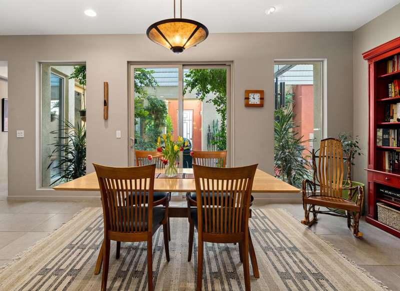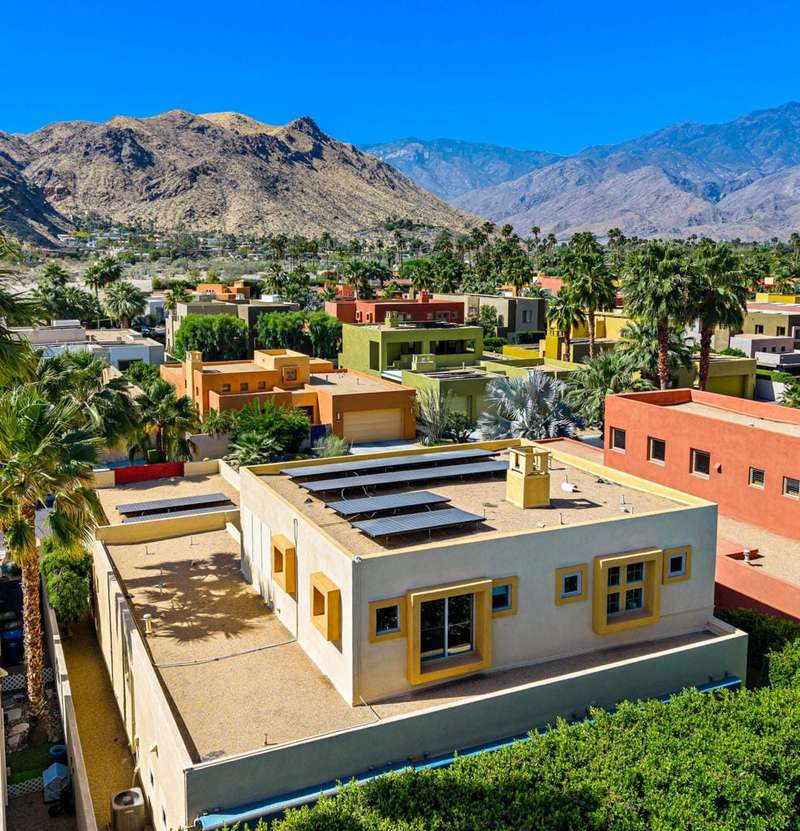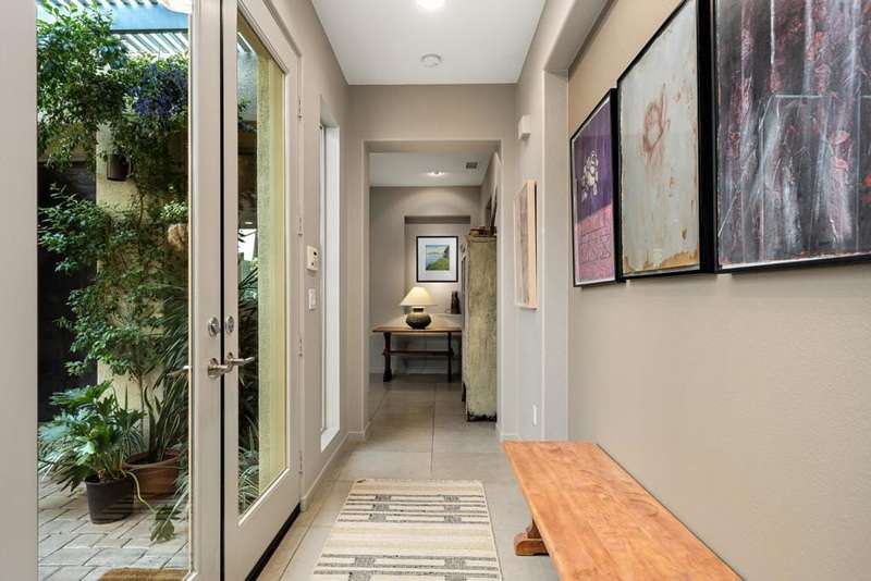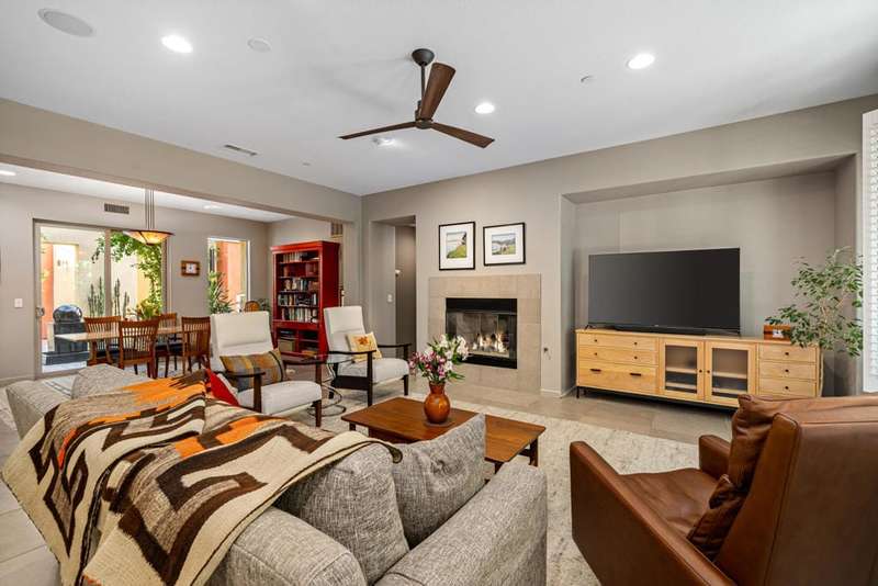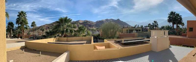 Presenting an inviting contemporary home in the highly sought-after Luminaire community--an intimate enclave in South Palm Springs consisting of pueblo-inspired desert modern homes. Effortlessly stylish, this home embodies the essence of the Palm Springs lifestyle. Behind private gates, a charming courtyard with a fireplace and fountain sets the tone. Inside, you'll discover a beautifully crafted modern residence with clean architectural lines, sleek finishes, and nearly 3,000 square feet of well-appointed living space that is highlighted by modern tile flooring, high ceilings, and natural light. At the heart of the home is a spacious gourmet kitchen with bright Cambria Quartz countertops, expansive cabinetry, gas cooktop, built-in stainless-steel appliances, and a generous island -- an ideal workspace for cooking as well as for entertaining. The spacious dining area overlooking the courtyard flows seamlessly into the Great Room with a gas fireplace, all overlooking the private backyard with pool and spa. The outside living area is the perfect place to relax or entertain. Step outside into the cool shade of remote controlled Sunbrella awnings and slip into your private sparkling saltwater Pebble Tec pool & spa or fire up the built-in BBQ. One of the home's standout features is the spacious upstairs guest casita, offering a mini kitchen, bath, sleep number Murphy bed and a private patio with the best mountain views in all of Luminaire. This exceptional property blends architectural distinction with modern comfort--offering the ultimate Palm Springs retreat. Additional features include a spacious trellised courtyard with built-in lighting and misting system, fully warranted solar system & Apex water conditioning system. Please Note: Google Maps Street View for this street is Inaccurate (use Google Earth)