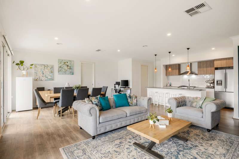 This exceptional four-bedroom, two-bathroom home with stone benchtops, built by 8 Homes, offers the perfect combination of modern design, quality craftsmanship, and family-friendly living. Located in the peaceful and picturesque community of Eynesbury, this residence is ideal for those looking for a spacious and stylish home on a generous 848m² (approx) block. From the moment you step inside, the home impresses with its thoughtful layout and high-end finishes. The two living areas provide ample space for both relaxation and entertaining, while the added study offers the flexibility to work from home or create a quiet retreat. The contemporary kitchen, featuring sleek stone benchtops and modern appliances, forms the heart of the home - a space that's as practical as it is beautiful. The master suite offers a private sanctuary with its spacious ensuite, while the additional bedrooms are generously sized to accommodate growing families. With side access to the backyard, there's potential for added storage or space for a boat, caravan, or trailer. Designed with a focus on quality, this home is built to last, and the two-car garage provides ample room for vehicles and additional storage. The expansive 848m² (approx) block offers plenty of outdoor space, perfect for children to play, gardening enthusiasts, or even the possibility of adding a pool in the future. Located in the charming Eynesbury community, you'll enjoy a relaxed lifestyle with easy access to local parks, schools, shops, and public transport, making it an ideal location for families looking for both convenience and tranquillity.