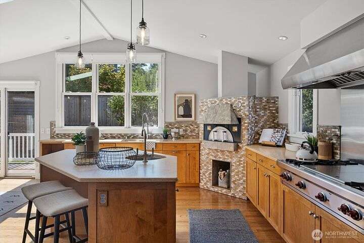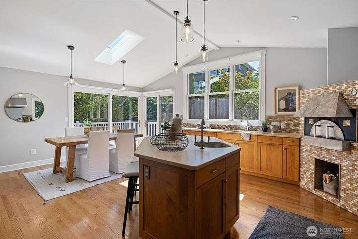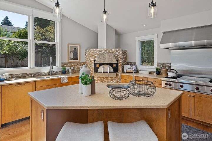 Meticulously renovated down to the studs 4 bedroom 4 bath home in sought after Windermere. Composed of unequaled quality, detail & personality. Light & open. Gorgeous remodeled open kitchen with an island, stainless steel commercial appliances, butler pantry & pizza oven. Family room off kitchen. Top floor features 3 bedrooms & 2 baths including a lavish primary with 2 walk in closets & nice winter view of Lake Washington. Main level 4th bedroom & separate office perfect for today’s work from home lifestyle. Lower level features a media or guest room complete with bath, offering flexibility for entertainment or hosting guests. All systems updated including AC. Fenced backyard with deck. Only minutes to Children's, UW, 520, downtown & Amazon