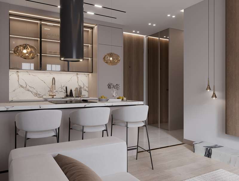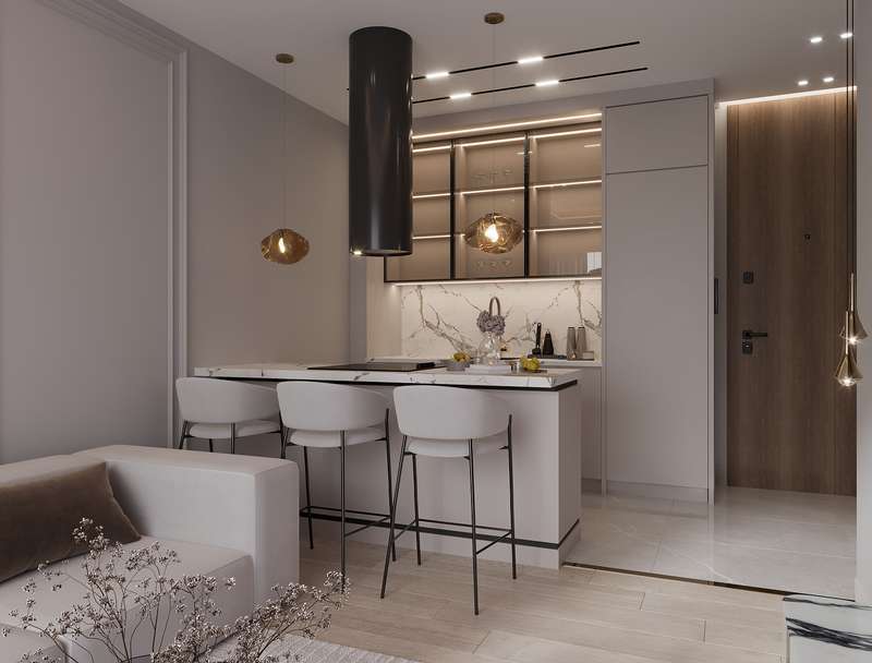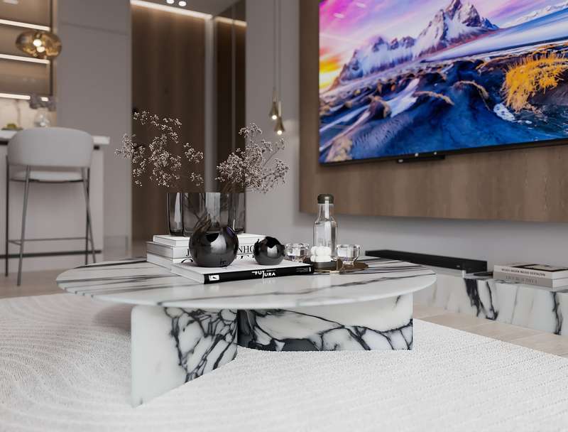 1-bedroom apartments consist of a living room, open-plan kitchen, bathroom, and a large balcony. Standing out with their stylish and functional design, the apartments are equipped with high-quality materials and top-segment products. Offering a combination of comfort and aesthetics, the apartments offer a unique opportunity for both modern living and investment.