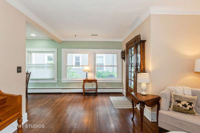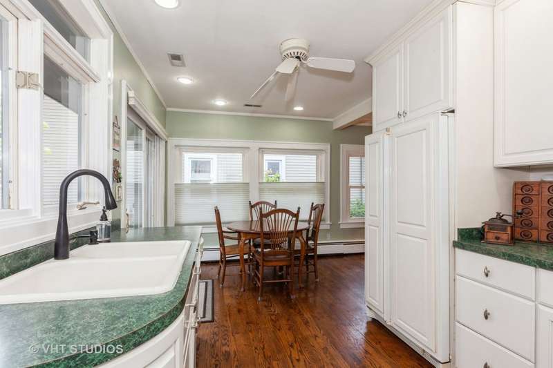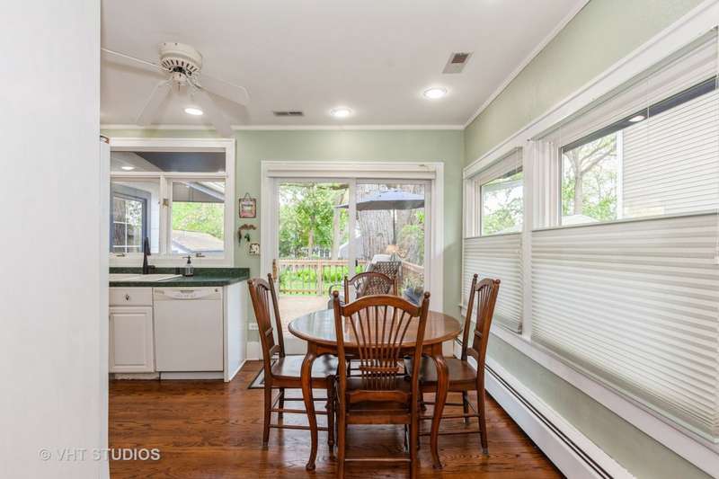 Vintage Charm in a walk to Forest Glen Elementary, Hadley Middle and Glenbard West HS, Lake Ellyn, Village, and Metra. Up the stairs to the cute front porch. Hang out and enjoy the neighborhood or enjoy the large private deck overlooking your shaded mostly fenced backyard. Enter into the charming foyer which is open to the main areas of this lovely home. Deep beautiful trim throughout the main level. Hardwood floors, some fresh paint, updated large windows, that let in lots of bright sunlight. Brand New roof and gutters, newer boiler. Best of both worlds - hot water heat and central air conditioning! White kitchen with large cabinets to the ceiling. Kitchen pantry also. 2 full baths, wood burning FP 'as is'. Finished basement with family room, rec room/playroom, full bath, office area, laundry room and plenty of storage. Lovely wooded 50x159 lot. 1 car older garage with brand new roof. Plenty of room for a 2 car garage.