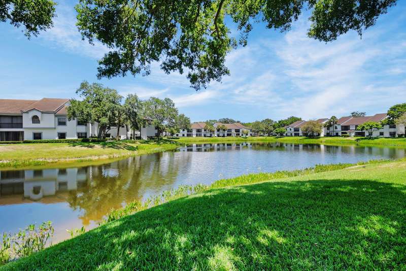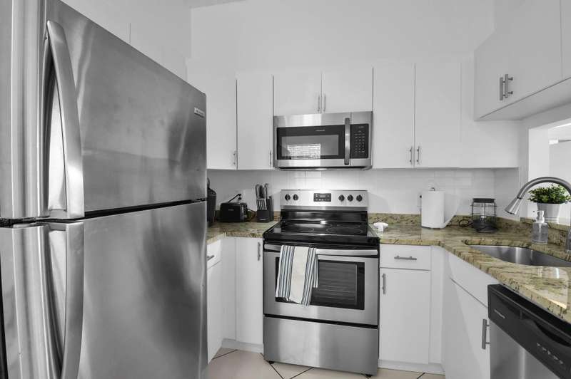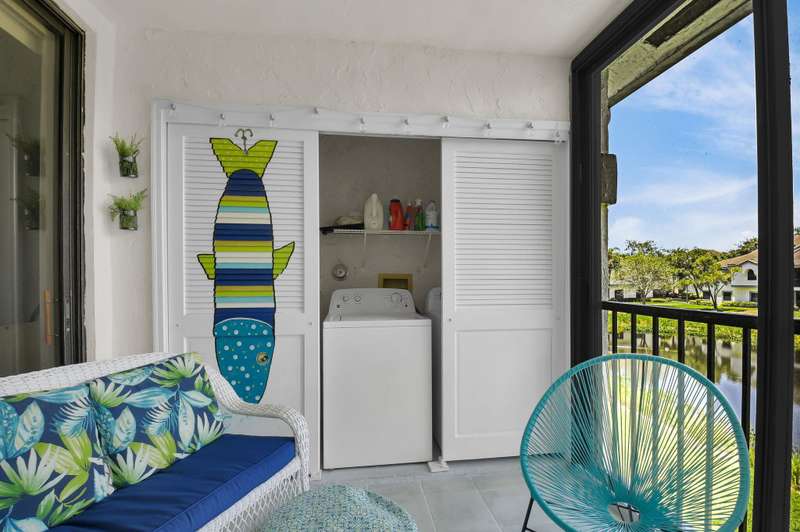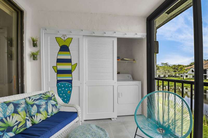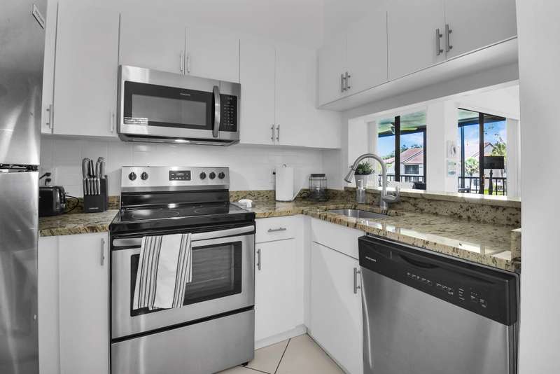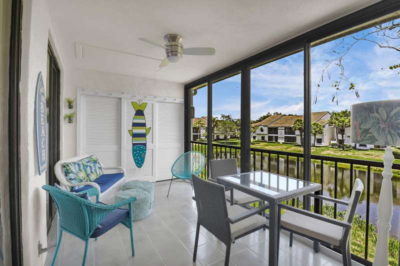 Discover your perfect getaway or forever home with this charming 2nd floor condo that offers picturesque lake views, a cozy beach-inspired ambiance, and turn-key convenience. It's ready for you to move in, fully equipped with tasteful furniture and everything you need for year-round living or a dream vacation retreat. Enjoy the serene beauty of the lake from every window. Whether you're sipping your morning coffee or unwinding after a long day, the tranquil water views bring a sense of peace and relaxation to your everyday life. The entire home is unified with sleek ceramic tile that not only enhances the aesthetic but also provides durability and easy maintenance. The eat-in kitchen boasts granite countertops, stainless-steel appliances, and ample cabinet storage.