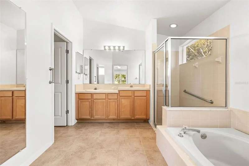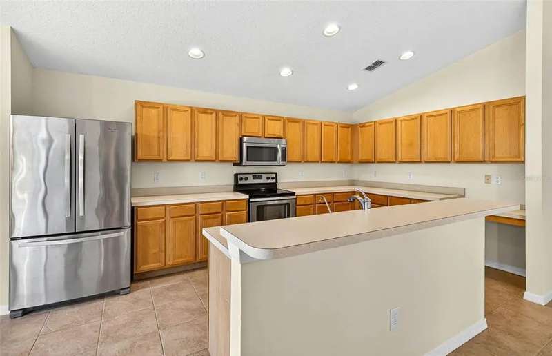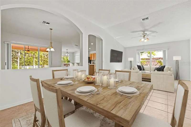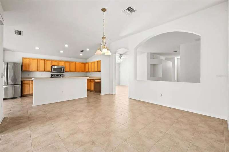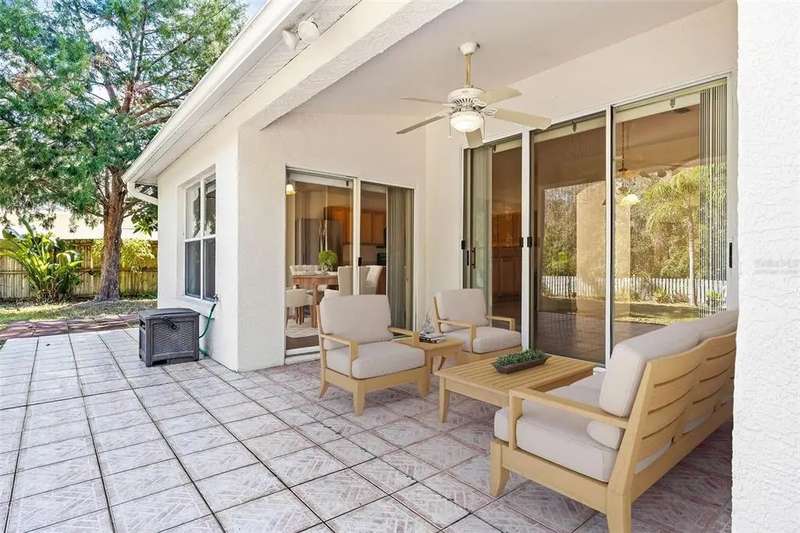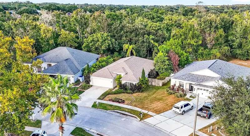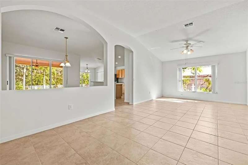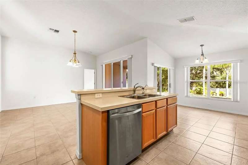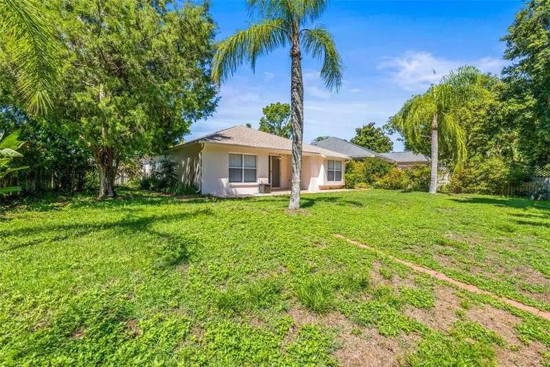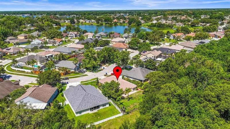 One or more photo(s) has been virtually staged. Step into possibility with this spacious 4 bedroom / 2 bath home in the heart of Land O Lakes! Nestled on a generous lot with strong bones and endless potential, this property is perfect for buyers ready to personalize and build equity from day one. With NO CDD fees, a very low HOA, and NO FLOOD insurance required, this home is truly a rare gem. Upgrades include: New Roof (2023), Water Heater (2022), A/C (2015), and Updated Electrical Panel with sub-panel pre-wired for a generator. Residence sits on an oversized, 101-foot-wide fenced lot with conservation views, offering both privacy and peaceful scenery. Step inside to discover 10-foot ceilings, a soft, neutral palette, and large windows and sliding doors that fill the home with natural light. The welcoming foyer opens to a spacious formal living and dining area, ideal for entertaining. The kitchen is a chef's dream, offering ample cabinetry, stainless steel appliances, and a convenient bar area for casual dining. A breakfast nook and family room, both with sliding glass doors, seamlessly connect to the tiled patio, perfect for enjoying outdoor activities. The thoughtfully designed split-bedroom floor plan ensures comfort and privacy for everyone. Retreat to the primary suite, where you’ll find a large picture window, dual walk-in closets, and an en suite bathroom featuring a soaking tub, separate shower, double vanity, and grab bars for added safety. The expansive backyard features mature palm and fruit trees, brick walkways, and multiple garden spaces. There’s plenty of room to add a pool or create your dream outdoor oasis. This home is ideally located near top-rated schools, shopping, dining, golf courses, and just minutes from State Road 54, with easy access to Tampa and major highways.