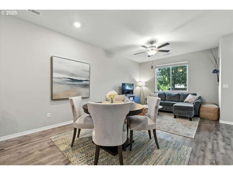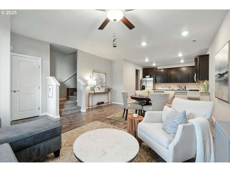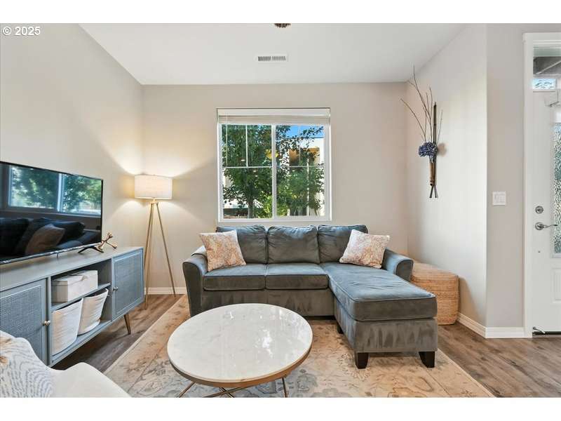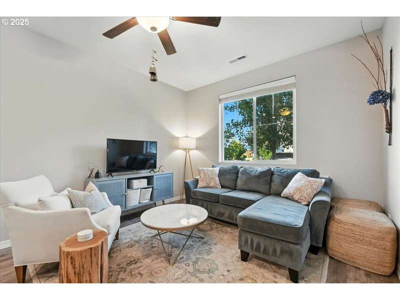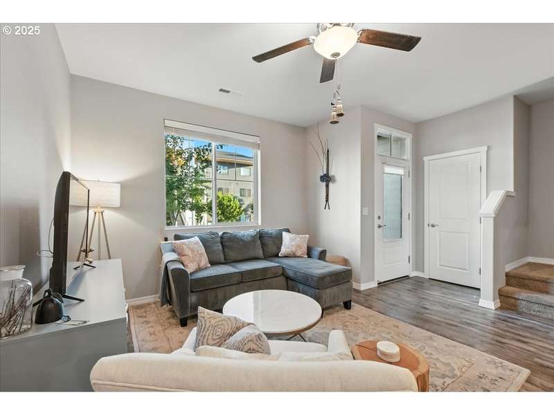 Better than new for all the right reasons! Pride of ownership shines in this bright, cheery, and superbly maintained townhome. An open-concept main level invites with engineered hardwood floors, and south-facing windows that beam with natural light. The kitchen showcases brilliant quartz counters, stainless appliances, and a gas range. There's also an eat bar, so the home's new head chef can put on a culinary show! The primary suite is an absolute marvel, where you'll find a private balcony, a walk-in closet, and an ensuite bathroom with a double vanity & walk-in shower. Upstairs also offers a versatile loft, as well as the laundry room. A/C is upgraded, and an air scrubber has been installed. Need more upgrades? Here you go: A brand new 50-gallon Bradford White water heater was installed in 2025. Garage door opener was replaced in 2023. Ceiling fans throughout the home will keep you comfortable downstairs & up! 2-car garage; low-maintenance fenced front yard--it all adds up to a fantastic find! This is a great value for first-time buyers, and for buyers wanting to downsize. Just 0.3 miles to Oak Grove Neighborhood Park. HOA dues cover commons maintenance & management, some exterior items, along with water for front yard, and tree care. Includes 1-year Fidelity National Home Warranty for Buyer.