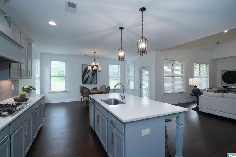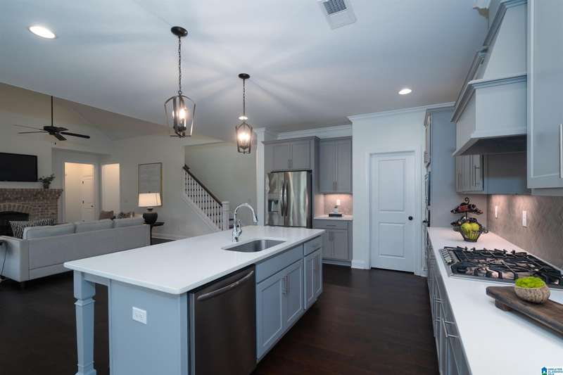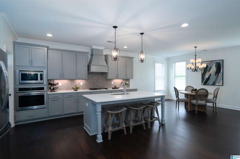 You will not want to miss seeing this stunning 1.5 story, 4BR/3BA home in the heart of Vestavia. You will fall in love with this open concept which is perfect for entertaining! The living room features a Memphis Brick fireplace with a 12 raised heart and soaring ceilings which opens into the kitchen with an oversized island.Other features are Custom cabinets, Quartz counter tops and walk in pantry & large Breakfast nook. The dining room has a Caldwell coffered ceiling. Other features are beautiful hardwood floors on entire main level and upscale amenities throughout. The primary suite has a soaking tub with Hudson casing and granite tub deck & dual vanities with tilt mirrors. Additionally there is a 2nd bedroom on the main level with its own bath. Upstairs you'll find 2 more bedrooms and a spacious loft area perfect for a playroom or home office. Also walk in attic & pull down attic for storage.The covered porch and expansive backyard provide the ideal setting for family gatherings!