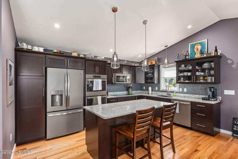 Well kept one- story with double sided gas fireplace; Cathedral ceiling; central air and heat pump. Custom kitchen includes stainless steel appliances; island; HW floors; unique lighting and more. Primary Br offers oversized jacuzzi and 2 walk-in closets. 3 car garage and so much more with delightful outdoor spaces and full basement ideal for future expansions.