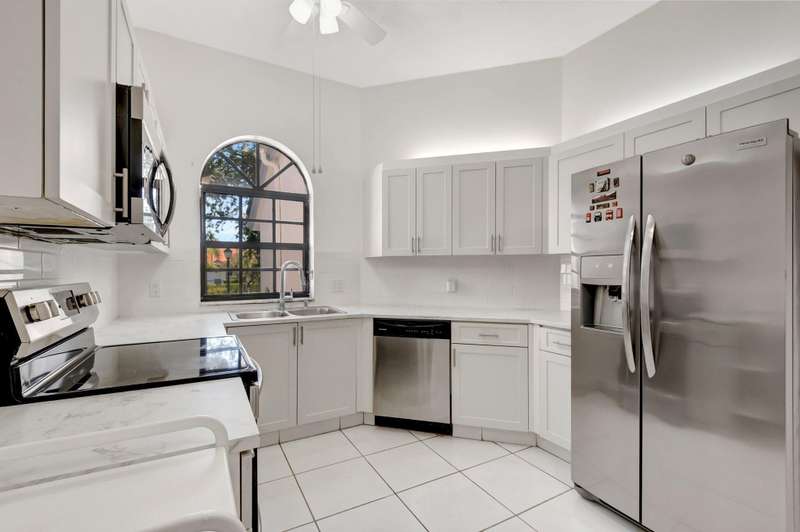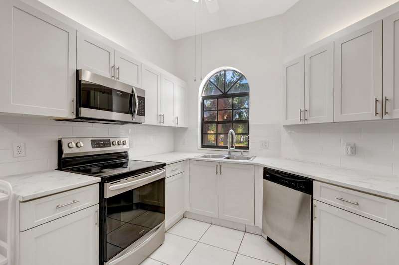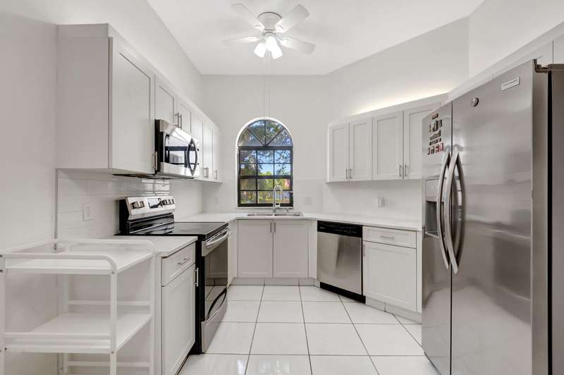 Welcome to this large, spacious first-floor-entry condo with the convenience of your own private elevator to 2nd floor! Featuring soaring vaulted ceilings, laminate stairs, and tile flooring throughout, this home offers both style and comfort. The kitchen has white cabinetry and stainless steel appliances. Expansive master suite with extra-large walk-in closet and en-suite bathroom. Located in the sought-after gated community of Platina, residents enjoy resort-style amenities including a sparkling pool, recently renovated clubhouse with gym, game rooms, lounge, cafe, library, tennis, basketball, and handball courts. Offered furnished or unfurnished, this condo truly has it all! Schedule your showing today and make this dream home yours! Monthly HOA dues include cable, water, and internet.