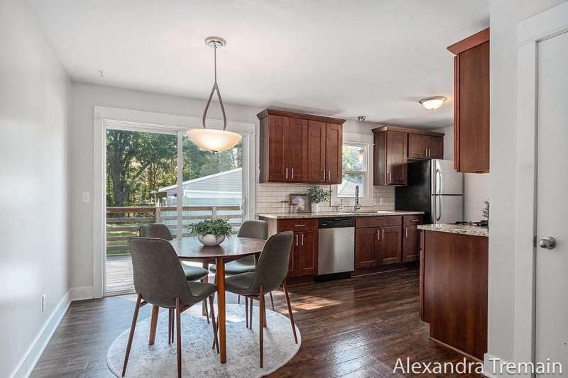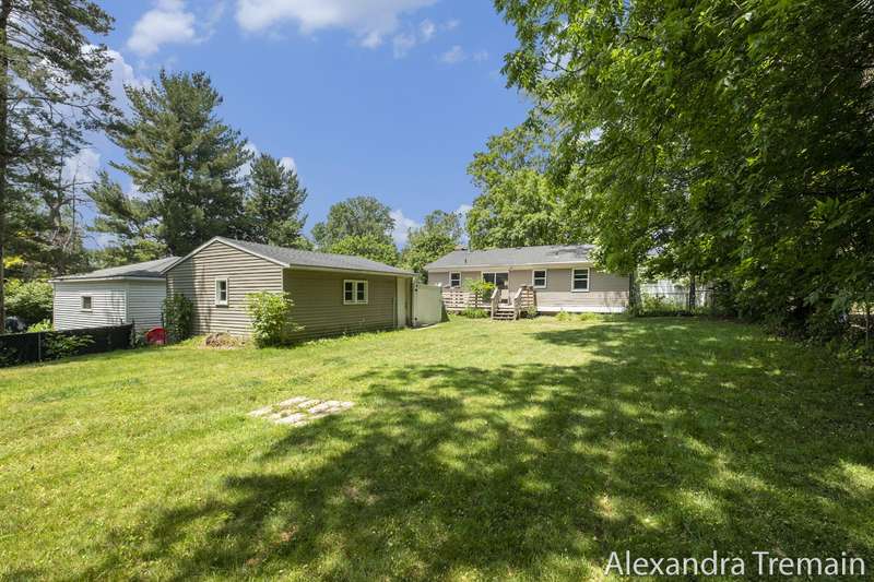 This 3 bedroom, 2 full bathroom ranch-style home has been lovingly cared for and is ready for its new owner! Step inside to discover beautiful wood floors that flow throughout the main level, enhancing the home's warm and inviting atmosphere. The spacious living area features a cozy fireplace and large picture windows. Adjacent to the living room is a dining area with sliders leading to the deck & your amazing new backyard! Enjoy 2 bedrooms on the main floor, including a spacious primary bedroom & 1 full bathroom with dual sinks and a bathtub. Check out the fully finished basement with your 3rd bedroom & 4th non-conforming bedroom, plus a 2nd full bathroom. The finished basement offers a secondary living space, a versatile area sure to meet all your needs! Great for another family room, play area, or home office. Outside, you'll find a fully fenced-in private wooded backyard, providing a serene escape and a wonderful space for outdoor activities, gardening, or simply unwinding in... nature. The home includes a convenient 2-stall garage and is located just a short 5-minute drive to the vibrant Bridge Street restaurants, where you'll have easy access to a variety of dining and entertainment options. Don't miss out on this incredible opportunity to own a beautiful home in a fantastic location. Schedule your showing today!