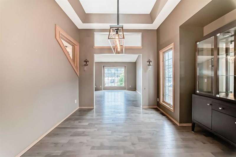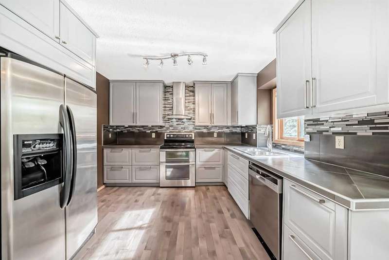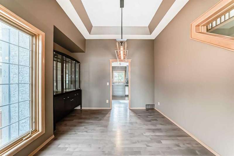 Welcome to 135 Canterbury Court, a stunning 2-storey walkout home in the coveted community of Canyon Meadows Estates, quietly tucked away on a private cul-de-sac. Offering over 3,000 sq. ft. of finished living space, this home features 4 bedrooms, 3.5 bathrooms, and a fully developed walkout basement. Step inside to a formal living room, spacious dining room, and a grand staircase leading upstairs. The updated kitchen boasts abundant cabinetry, stainless steel appliances, and a sunny south-facing view of the backyard. A breakfast nook opens to the inviting sunken family room with custom built-ins and a cozy wood-burning fireplace. A half bath, laundry room, and access to the double garage complete the main floor. Upstairs, the owner’s retreat offers an electric fireplace, a custom walk-in closet, and a spa-inspired 4-piece ensuite with jetted tub, walk-in shower, and mosaic tile details. Two additional bedrooms and a full 4-piece bath complete this level. The walkout basement expands your living space with a family room, games/rec area, fourth bedroom, and another full bathroom. French doors open to the beautifully landscaped, pie-shaped yard with mature trees. Outdoor living is at its best here, with a large deck, built-in firepit, outdoor kitchen, and balcony. Rarely do homes in Canyon Meadows Estates come to market. This property combines privacy, space, and a prime location with quick access to Fish Creek Park, Macleod Trail, Anderson Road, and Elbow Drive. Don’t miss the chance to make this exceptional home your own.