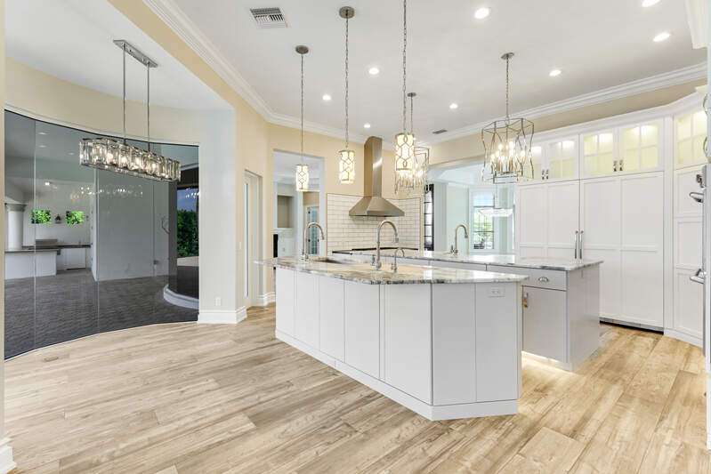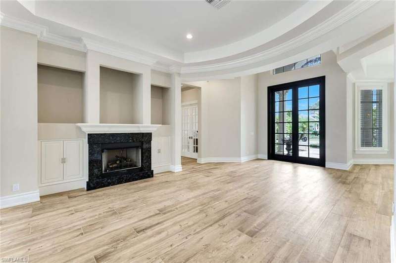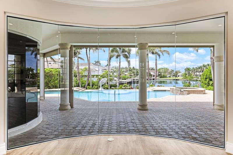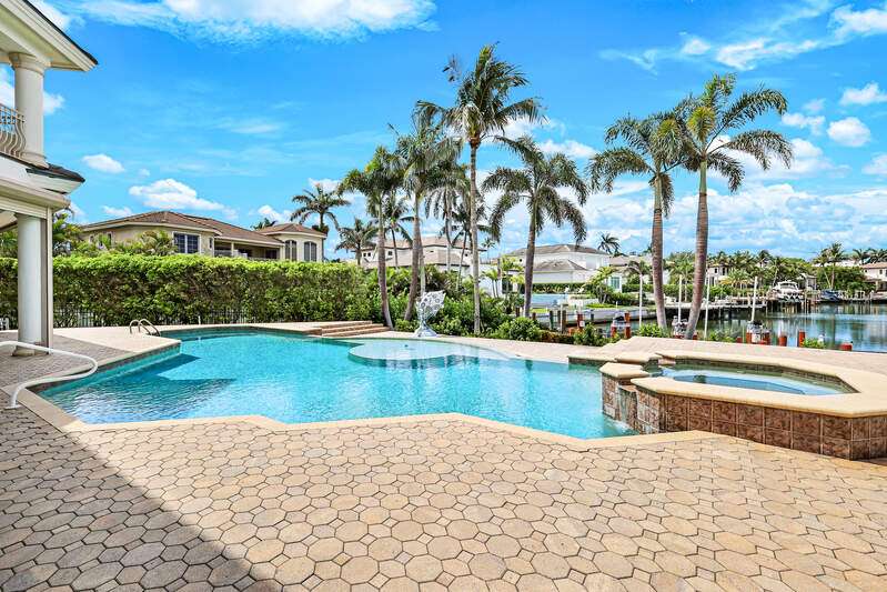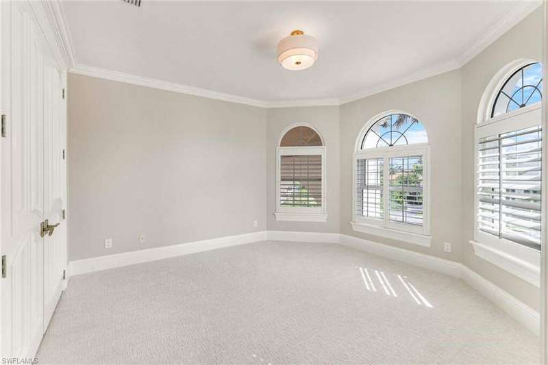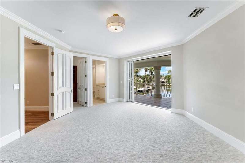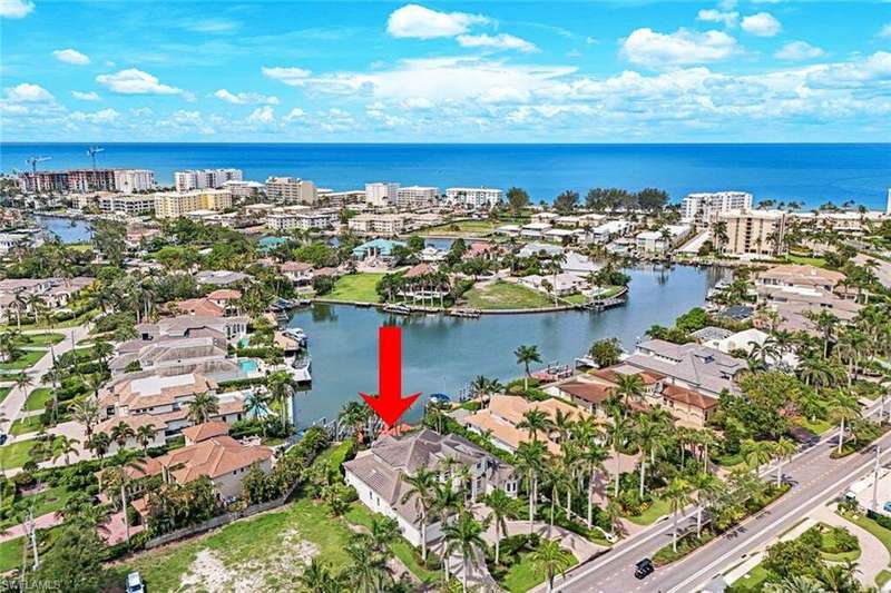 As you step into the formal living room, you're greeted by awe-inspiring water views framed by floor-to-ceiling windows, complemented by a cozy gas fireplace. Enjoy spectacular sunsets from your new residence in The Moorings, situated on .31 acres with southwest rear exposure on Compass Pass, where you'll find your boat dock with a lift that can accommodate a substantial-sized boat. Quick, direct Gulf access with one bridge is a boater's delight. Five bedrooms plus a den, a large bonus room, five and a half baths, as well as an oversized attached garage with a circular drive provide ample space for your car collection and street-legal golf cart. The generously sized family room, with pocketing sliding doors opening up to your amazing outdoor living space, will surely become a favorite spot for relaxing and enjoying time together. The sprawling master suite, with dual vanities, a jetted tub, walk-in shower, his-and-her custom closet systems, a separate library or den with beautiful French doors, and an additional first-floor en suite bedroom, offers ultimate comfort. Upstairs, you'll find three inviting bedrooms with custom closets and en suite baths, plus a pleasant bonus room with a wraparound balcony overlooking the fabulous pool and bay, perfect for a game room or media room. The grand gourmet kitchen, featuring a Thermador appliance package with a six-burner gas range and griddle, two dishwashers, a double wall oven, and a microwave drawer, is sure to excite any foodie. Dual Sub-Zero refrigeration, ample custom under-lit cabinetry with two islands, a fantastic oversized sink, and an ice maker make it perfect for entertaining. The impressive pool, with its expansive sundeck, jacuzzi, and summer kitchen, sits amid a beautifully landscaped, fully fenced backyard, ensuring privacy and security for your loved ones. Nestled on prestigious Mooring Line Drive, you're just moments away from Old Naples, the Venetian Village, Waterside Shops, and the exclusive Moorings private beach.
