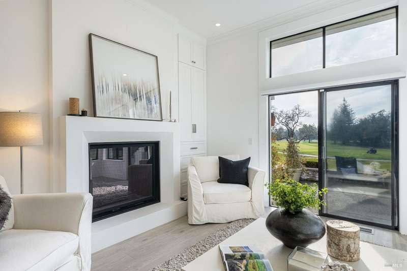 Discover unparalleled views from this stunning single-story condo, perfectly situated on the 16th fairway of the prestigious Silverado Resort South Course. Meticulously remodeled in 2018, this home features a bright and spacious open floor plan, complete with a cozy fireplace in the living room and two luxurious en suite bedrooms. Enjoy the outdoors with two inviting patios, and take advantage of the convenience of a two-car garage and a dedicated golf cart garage. Plus, experience the peace of mind that comes with living in a gated community that boasts a refreshing pool. Don't miss out on this exceptional opportunity to enjoy resort-style living at its finest!