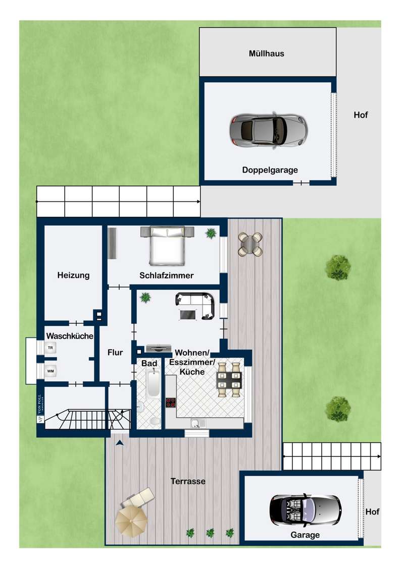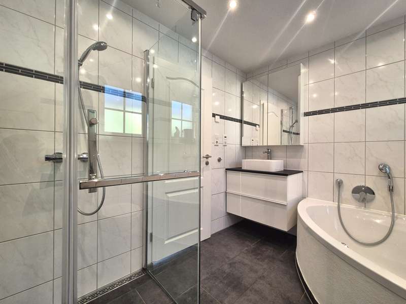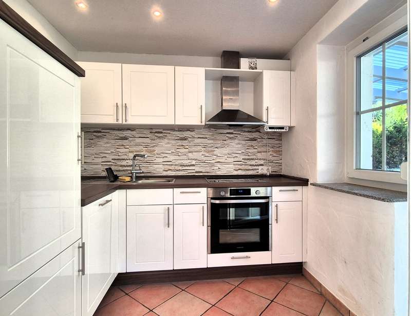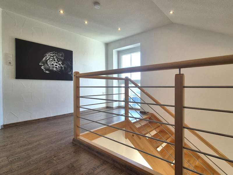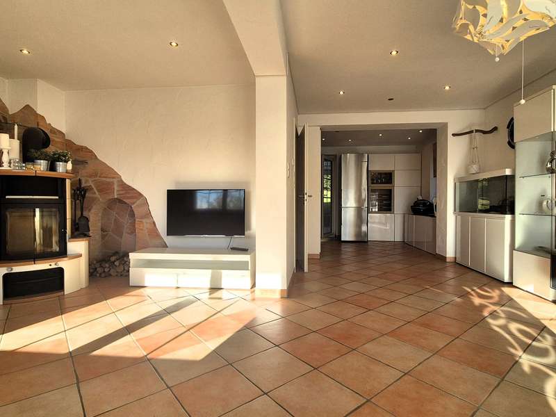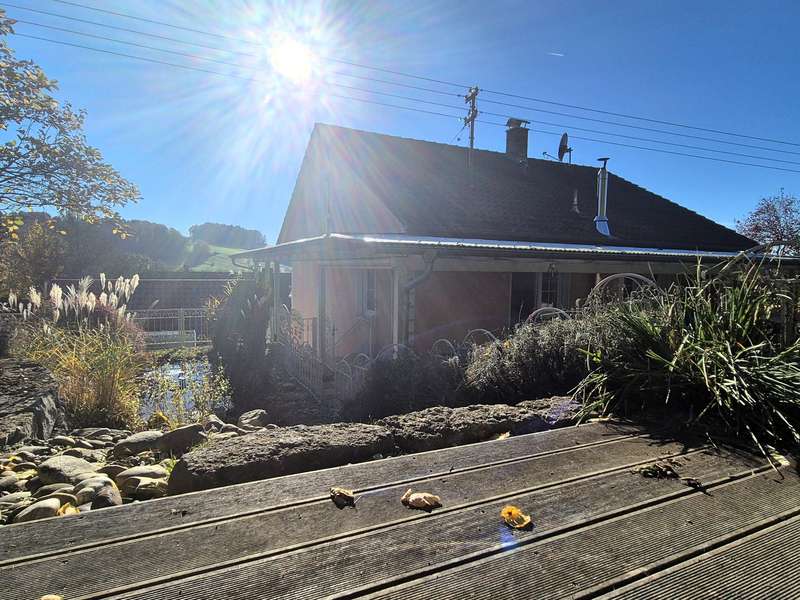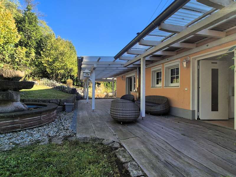 The single-family house built in 1966 was refurbished with great attention to detail and with a total living area of approx. 136 m² and a generous 790m² garden plot surrounded by green shrubs and trees, a covered terrace and a natural stone fountain, offers perfect living conditions for the whole family. The house is divided into three levels, offers with five rooms a spacious living space of approx. 136 m² and includes a ground floor and attic floor as well as a spacious basement with a granny flat. Through the spacious front garden leads into the attractive entrance area upstairs, which offers direct access to the cozy and bright approximately 70 m² main apartment with fireplace and spacious terrace with direct access to the garden. The open, fully equipped kitchen with separate dining area offers ample space for the cozy get-together of the family. There is also a bathroom with a bathtub on the first floor and a floor-level shower and a bedroom. The converted attic has a room and a small bathroom with shower. The use of the attic is customizable, connections for a kitchen are available and the possibility of a fireplace installation is given. The ground floor awaits you in addition to utility rooms and boiler room in addition a stylish apartment with two rooms and about 53 m², separate entrance, fitted kitchen, bathroom with bathtub, underfloor heating, Swedish stove (possible) and direct access to the garden. The covered terrace with stunning views promises additional space to relax. The floors in the house are equipped with well-kept parquet, laminate and tiles as well as underfloor heating. The living rooms with terraces and the garden with separate barbecue area provide ample space for comfortable living. In addition, a single garage and a newly built double garage with sectional door and pitched roof with loft are available. Three additional parking spaces are also located on the property. The house has been completely refurbished in recent years high quality and the property is in a very good and clean condition, this is reflected for example by the high-quality exterior and roof insulation with natural fiber or the equipment with triple-glazed windows and some electronic shutters. The generous living space over three levels offers various possibilities of individual design. Take a look at the following virtual tour: https://ogulo.de/3435/Buehlerzell