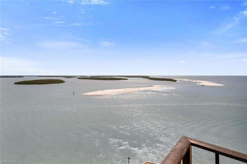 Welcome to Shipp's Landing - Marco Island's premier waterfront destination! This stunning 15th-floor residence in the highly desirable south-facing 24 stack offers breathtaking panoramic views of the Gulf of Mexico, Caxambas Pass, and the Ten Thousand Islands. Watch dolphins play and boats cruise by from your private, oversized balcony perched high above the sparkling waters. Step inside through the floor to ceiling glass doors and find a welcoming, turnkey-furnished home filled with warm, natural light and endless views. The extensive balcony, large living-dining area, and modern kitchen with considerable countertop and cabinet space make this home in the sky the perfect place for hosting your family and friends. The primary suite is a true retreat with balcony access, sweeping water views, and a large ensuite bathroom featuring a double vanity and walk-in shower. Guests will feel at home in the comfortable second bedroom with adjacent full guest bath. Additional features include in-home laundry room, a large storage closet off the hallway, and covered parking. Shipp's Landing is a private community renowned for its resort-style amenities including three pools, a spa, a state-of-the-art fitness center, tennis and pickleball courts, boat docks, a private beach area with kayak launch and storage, fishing pier, bocce, shuffleboard, and clubhouses - all nestled along beautifully landscaped grounds. Whether you're seeking a full-time residence, a seasonal getaway, or a smart investment opportunity, this residence offers the perfect blend of luxury, comfort, and unbeatable island lifestyle. Move-in ready and waiting for you to make it your own! Don't miss this rare opportunity to own one of the best vantage points Marco Island has to offer. Schedule your private showing today! Estate sale.
