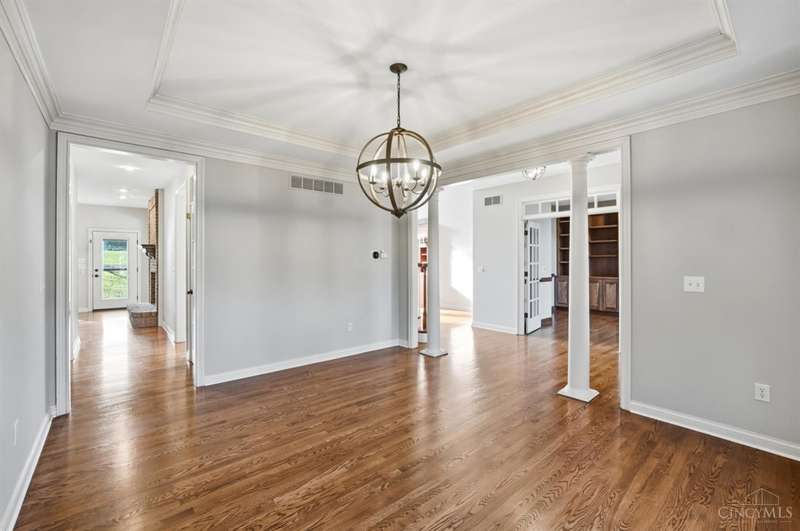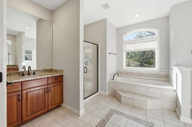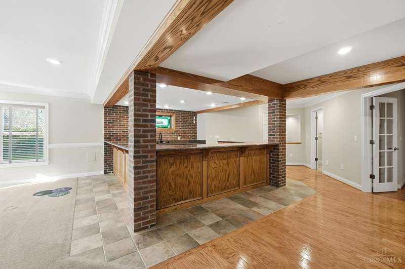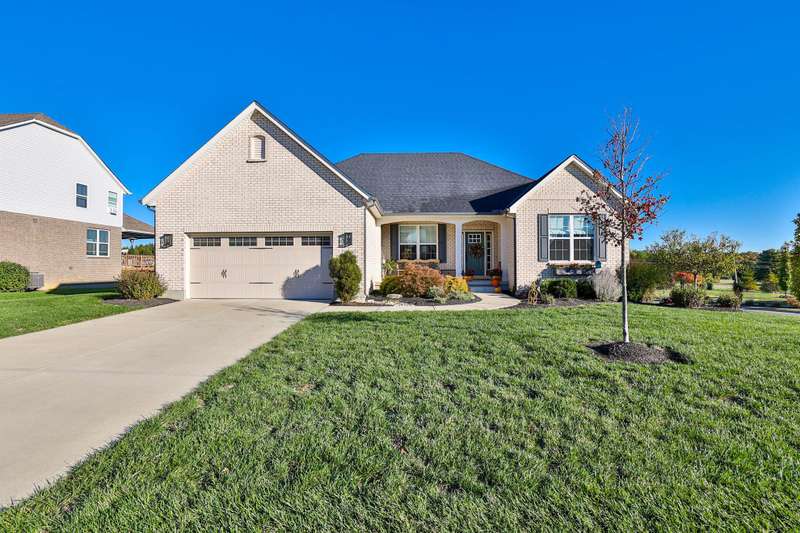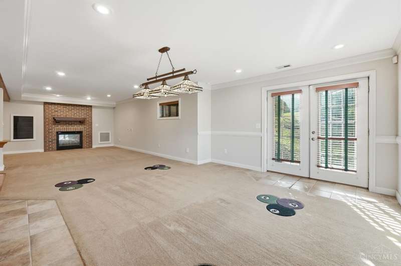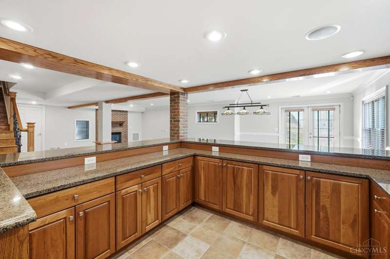 Elegant Custom Home Designed for Comfort and Entertaining! This quality-built residence welcomes you with a beautiful solid wood front door and a striking two-story great room featuring a see-through gas fireplace shared with the hearth room. Hardwood floors in the entry, hallway, study, dining room, and hearth room. Granite surfaces are in all the kitchen, baths, and laundry room. The 1st floor primary suite has a walk-in closet with organizer, a spacious bath with separate vanities, a soaking tub, and a walk-in shower. Perfect for gatherings, the w/o lower level offers a pub-style bar with a wraparound design, ideal for hosting around the pool table and the cozy sitting area with a gas fireplace. A separate gaming room with hardwood flooring provides a dedicated space for today's entertainment options. The full bath adds convenience. A large patio and connecting deck overlook the mature, wooded lot. The oversized heated three-car garage has storage w/blt-in organization. Impressive!
