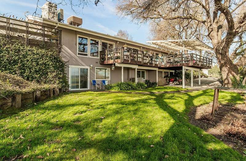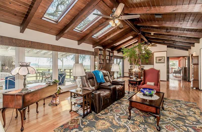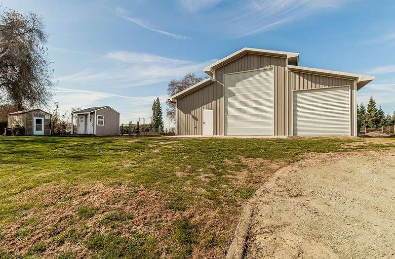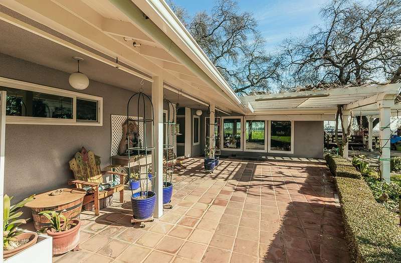 Come experience the richness & quality of this 3,028 sq ft custom Taylor Wheeler home. Not only is the home exquisite, but it sits on 21.67 acres with a bluff view of Sierra Nevada's. A quick overview of this property includes a home of 3,028 sq ft, 3 BR 2 BA, plus a 1 BR, 1 BA downstairs apartment, 3-car garage and 3-car carport. There is a pebble-tec pool surrounded by grass with beautiful oak trees & lush landscaping. There are citrus trees plus family orchard with varieties of fruit. The pastures are fully fenced, & the grounds include 60x42 ft metal barn/shop, outside his & her bathrooms, 2 greenhouses, 4 horse stalls & fully paid for solar, Ag and domestic wells. When in full bloom this property is breathtaking! Electric front gate takes you on to the asphalt driveway lined with mature Crepe Myrtle trees. Gorgeous custom double doors invite you into a spacious wood floor entry. The vaulted tongue & groove ceilings continue throughout living, dining, kitchen and family rm. Extraordinary natural light comes through dual pane windows & several skylights. The kitchen was updated in 2018 with cabinets, appliances & designer tile honoring the original style, design & architecture. Enter the raised deck from the living and dining rooms & sit under magnificent Oak trees overlooking the pastures. Below is the entrance to the apartment with its very own living room and kitchen. Walking the paths through the exquisite grounds and gardens is a true adventure.
