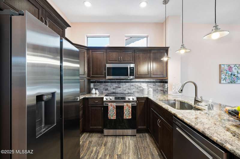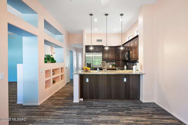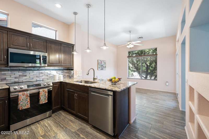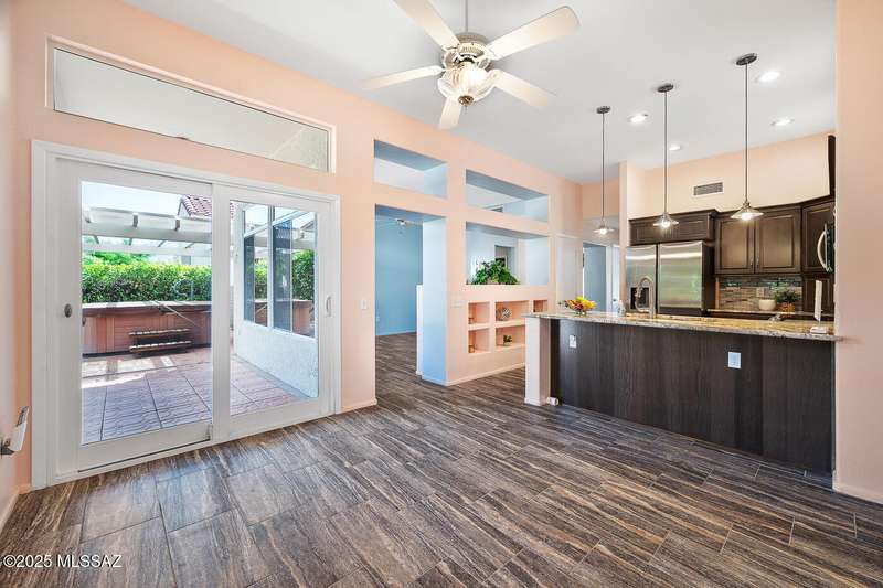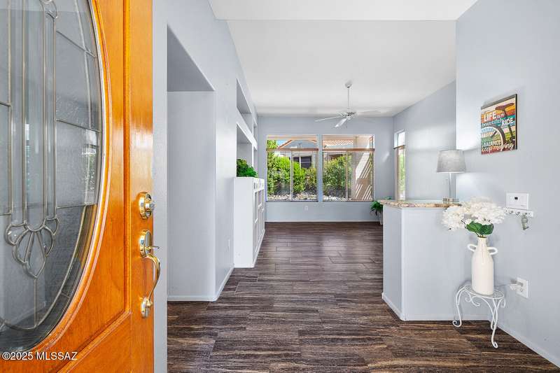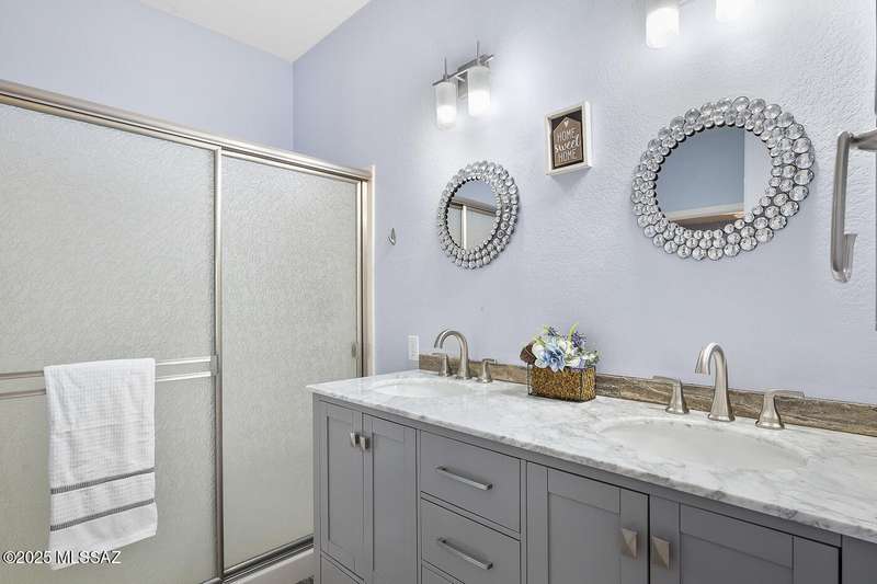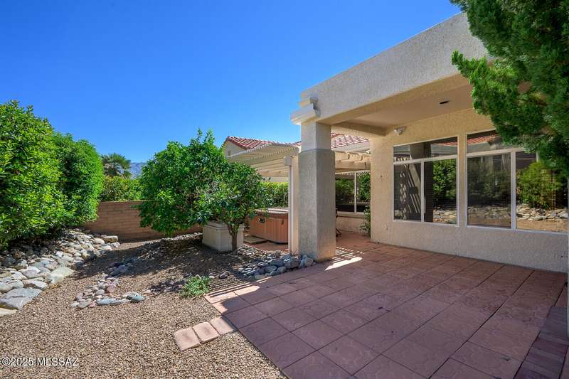 Welcome to Sun City Oro Valley, a premier Del Webb 55+ community in Rancho Vistoso! This stylish 2-bed, 2-bath single-story home features an updated kitchen, modern tile floors, spa-like primary bath with walk-in shower and dual vanity, and a hall bath with walk-in tub. Enjoy an OWNED SOLAR system for energy savings, a WATER SOFTENER, and ALL APPLIANCES INCLUDED. Relax in your private backyard with hot tub. Community amenities include a pristine golf course, resort-style pools, fitness centers, clubs, and mountain views--perfect for an affordable, active Tucson lifestyle!