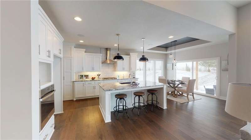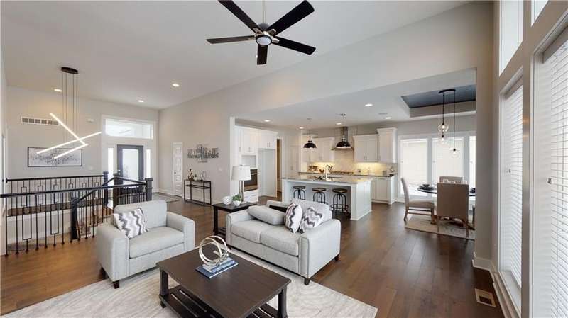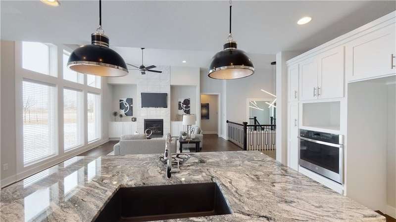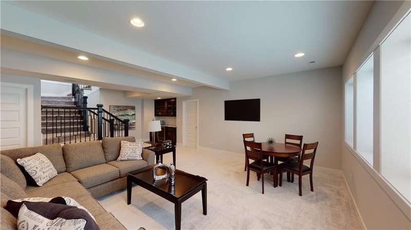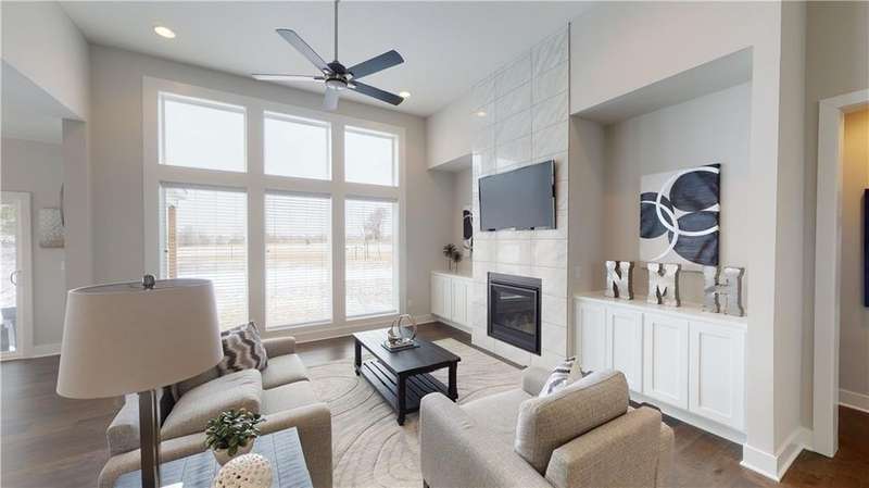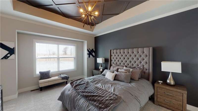 Lot 113 - The Sierra V by New Mark Homes. This ranch plan is a custom build located on a cul-de-sac lot backing up to the golf course. Spacious plan with 3 bedrooms on the main level as well as 2 and 1/2 baths. Lower level features a rec room as well as an additional bedroom and full bathroom. Photos are of a previous model. Community amenities include pool, play and picnic area, tennis, basketball and pickleball courts and a community restaurant open to the public. Convenient highway access makes Falcon Lakes close to everything. Ten minutes to the Legends Shopping and Entertainment District and 30 minutes to the airport and most other parts of the metro area, including Lawrence. Acclaimed Basehor- Linwood Schools.