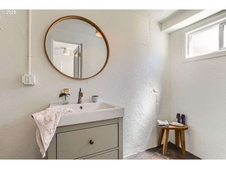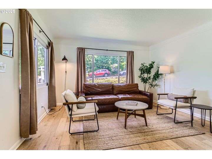 Perched in a peaceful setting with sweeping views of Rocky Butte, this charming bungalow/ranch offers remarkable flexibility with TWO SEPARATE UNITS,for shared living or instant income potential. Restored to its original character in 2022,the main home features hardwood floors, an updated kitchen w/quartz countertops,farmhouse sink, handmade tile, & Miele dishwasher. The living room centers around a cozy wood-burning fireplace,perfect for quiet evenings or entertaining. Charming archways and spacious bedrooms. The lower level provides flexibility to grow with your needs, featuring a daylight basement with a half bath and ample space to create a third bedroom, guest suite, or even a third separate living unit. All new in 2022: Heat pump furnace, Central Air. A separate apartment (fully renovated in 2025) original 2BD/1BA apartment complete with its own electrical meter—makes this an ideal standalone unit. It features brand-new casement windows, new plumbing, new electrical, new heat,polished concrete floors, new kitchen cabinets with walnut counters, a vintage range, new water heater, and new washer/dryer hookups. All brand new updates. Enthusiasts of all kinds will appreciate the oversized two-car garage, ideal for use as a studio, workshop, storage, or more, with two brand new garage doors and openers (2024). The large lot opens up endless options: subdivide (buyer to verify), create urban garden, build additional outbuildings or dwellings by exploring further development. Just blocks from the People’s Courts, local restaurants, new food cart pods, as well as ongoing streetscape improvements on 82nd. Across from a community garden and surrounded by great neighbors, frequent dog walkers headed to Rocky Butte and the ideal spot to enjoy sunsets. [Home Energy Score = 2. HES Report at https://rpt.greenbuildingregistry.com/hes/OR10197146]