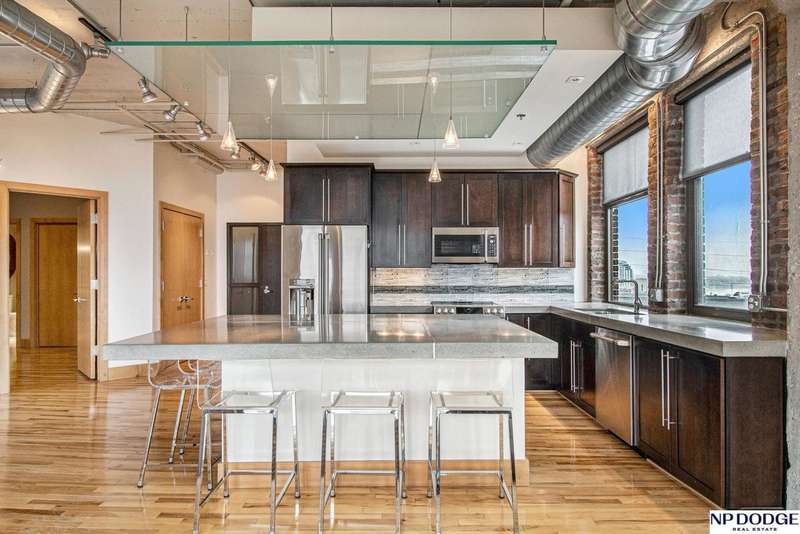 Experience the best of downtown living in this spacious, move-in-ready condo in the Capital District, directly across from the CHI Center, close to Holland Center. Enjoy rare privacy while being steps from Omaha's top dining, entertainment, and events. Featuring high-end Caf�© appliances, a 5x8 island, concrete countertops, walk-in pantry with 2 wine fridges, hardwood floors, 10? ceilings, and a sunlit open layout. Formal dining room, private covered 6x20 balcony, and a charming office. The primary suite offers a spa-like bath with dual sinks, large walk-in shower, soaking tub, and generous closet. In-unit laundry with washer/dryer. Includes access to a workout room and three secured underground heated parking spots. Head up to the rooftop balcony for 360? views! Minutes to the airport, Old Market, CWS Stadium, and more. HOA includes water, sewer, trash, snow, security, and exterior maintenance. Discover a unique lifestyle in the heart of Omaha!