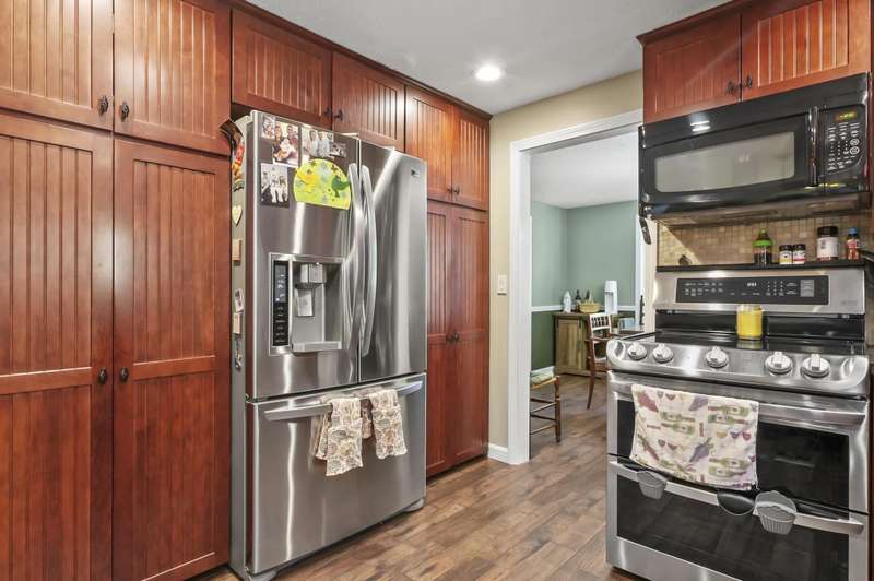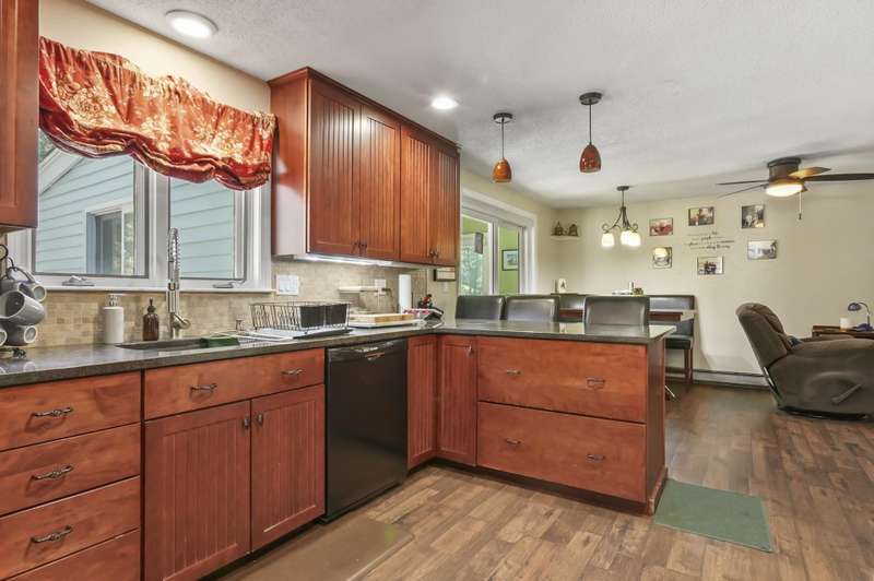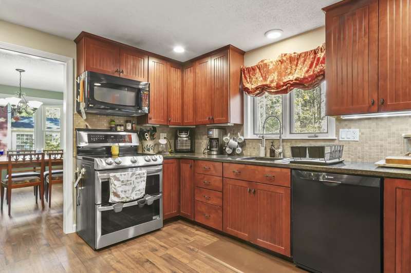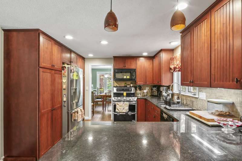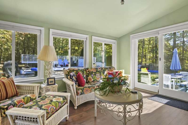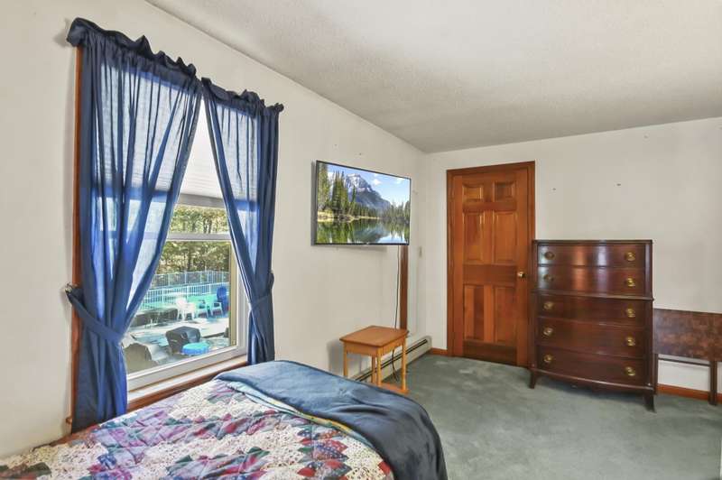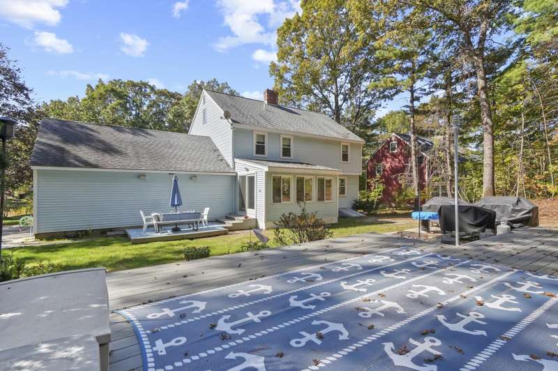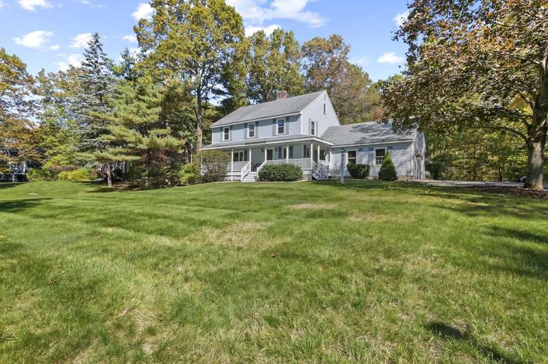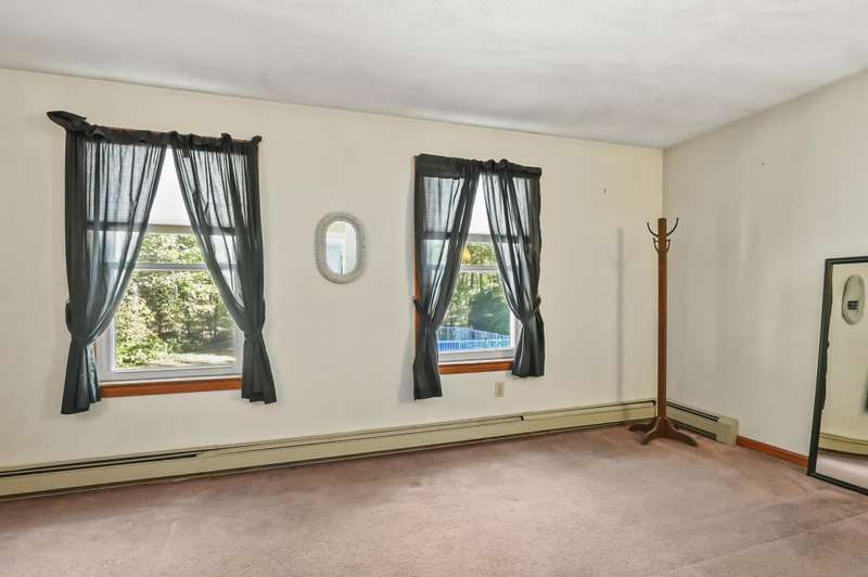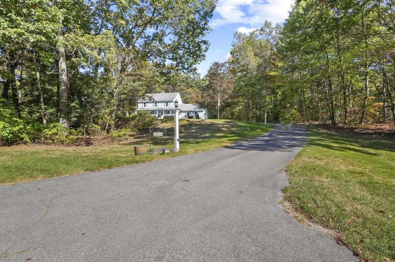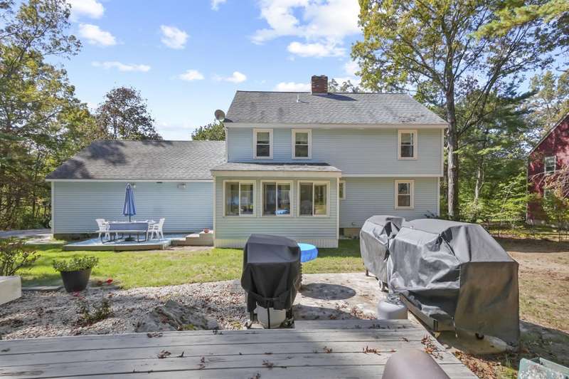 Welcome home to Londonderry! Set back on just over an acre on a dead-end street, this meticulously maintained 4-bedroom, 2.5-bathroom Colonial truly has it all. The main level is designed for effortless living, beginning with a charming covered front porch. Inside, you'll find a living room with a cozy fireplace that flows seamlessly into the formal dining room featuring a lovely bay window. The heart of the home is the kitchen, boasting granite countertops, a breakfast bar, and a dining area that opens directly to the bright sunroom. Plus, a dedicated home office workspace and half bath round out this floor. Upstairs, the primary suite is a peaceful private retreat with its own full bathroom. Three additional bedrooms share a full bathroom with dual vanities. Need more space? The finished basement offers a fantastic rec room complete with a bar, plus dedicated laundry space. Outside, the home sits back on a generous 1+ acre lot with a wooden deck surrounding the above-ground pool for summer enjoyment. A two-car garage and private setting complete this incredible package!